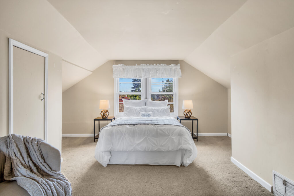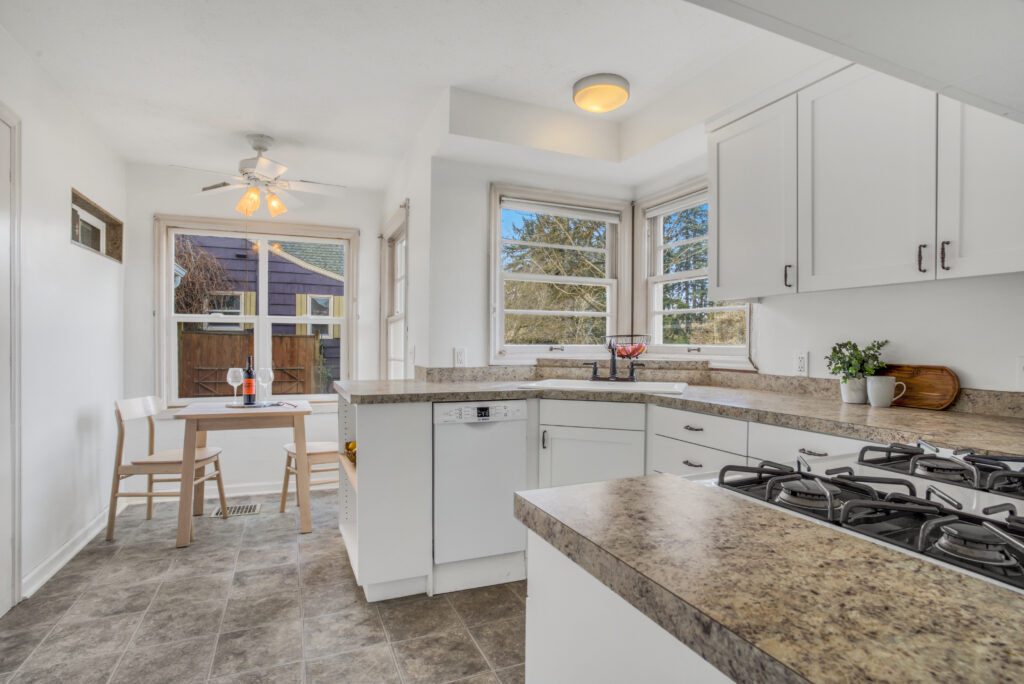 Enticing Cape Cod tucked away on a dead-end street in SW! Huge lot with mature plantings bring you up off the street with a long driveway and territorial view. Large windows brings in lots of natural light in the living room, complete with hardwood floors and cozy gas fireplace. Two bedrooms and full bath on main, separate tub and shower, hex tile floor. Peaceful bedroom upstairs with generous walk-in closet. Newer kitchen with cabinets, 18″ dishwasher, new appliances, and eating nook. Laundry is tucked inside a main floor bedroom closet, second laundry with sink and extra toilet behind door in basement. Lots of storage with the large attached garage, full basement. Extras include a high efficiency furnace, fresh interior paint, and new windows. Super accessible to I-5, Barbur and close to Multnomah Village happenings!