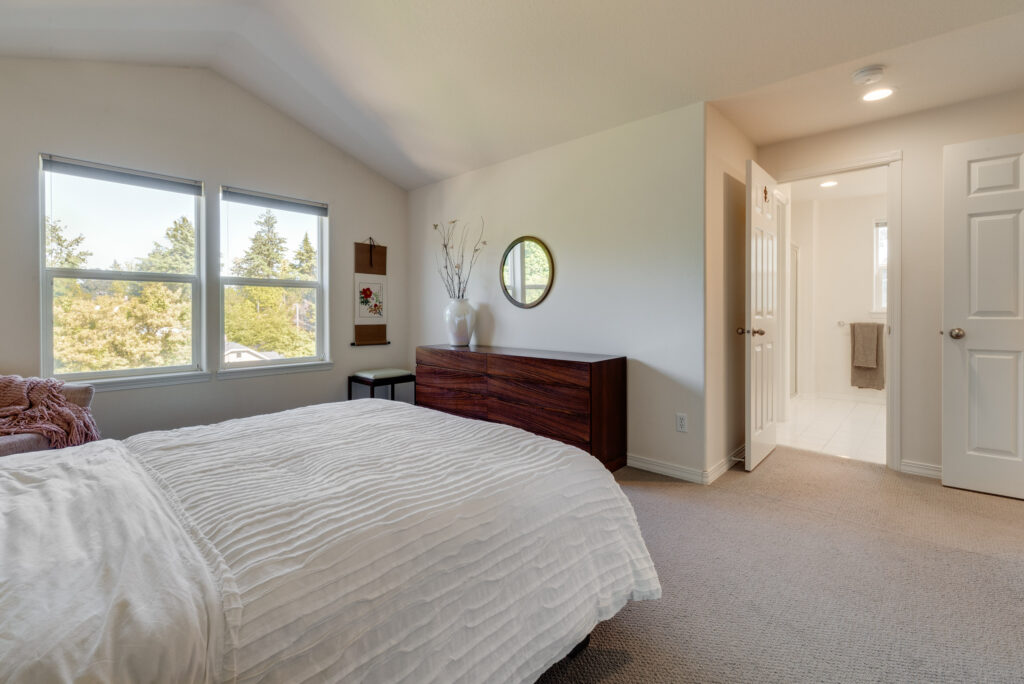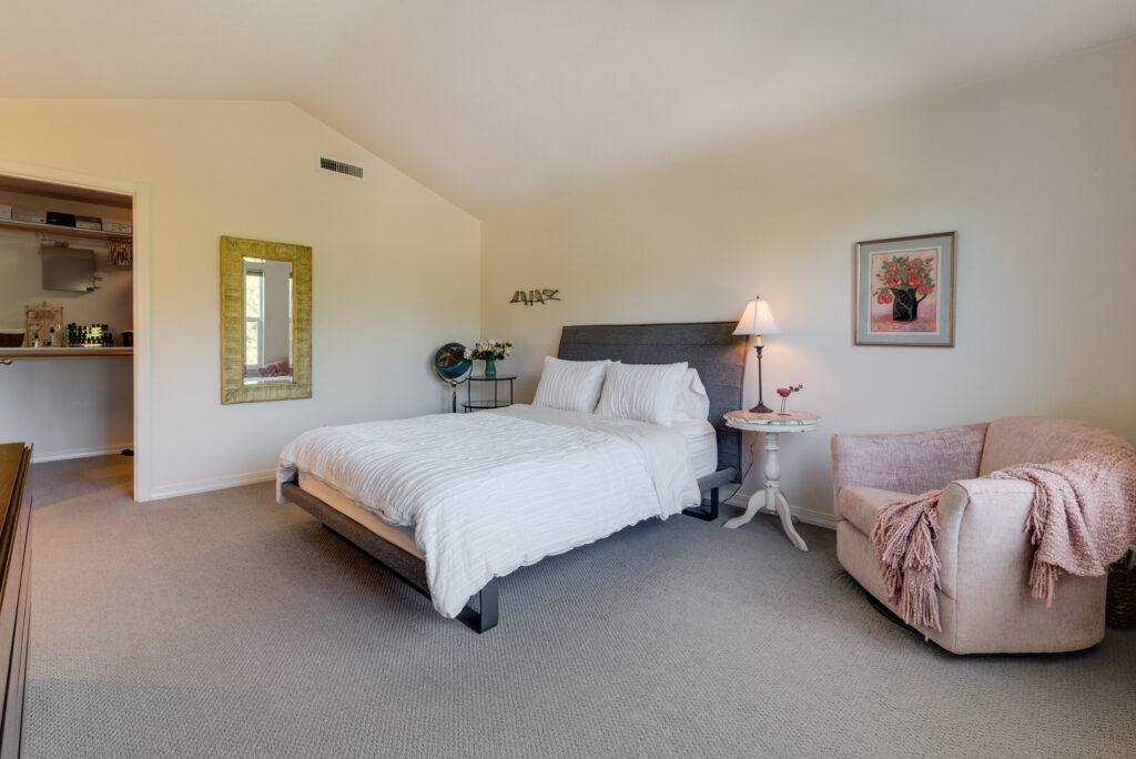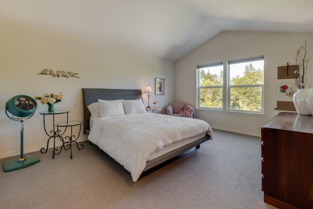 The upper level has an ideal layout with two primary suites. They both offer big windows, vaulted ceilings and closet organizers. Plus, the home has a convenient central vacuum system for ease of use.