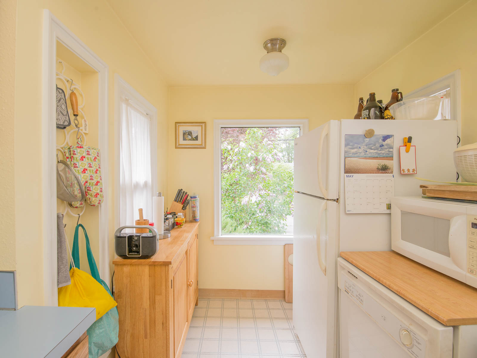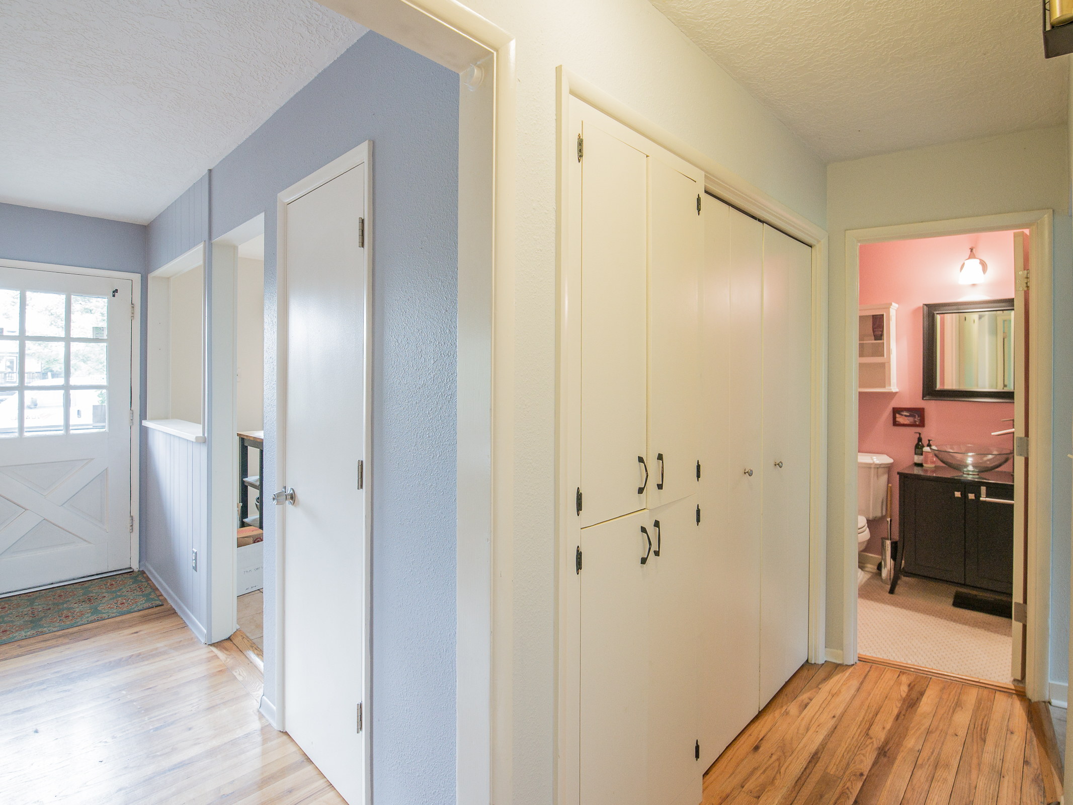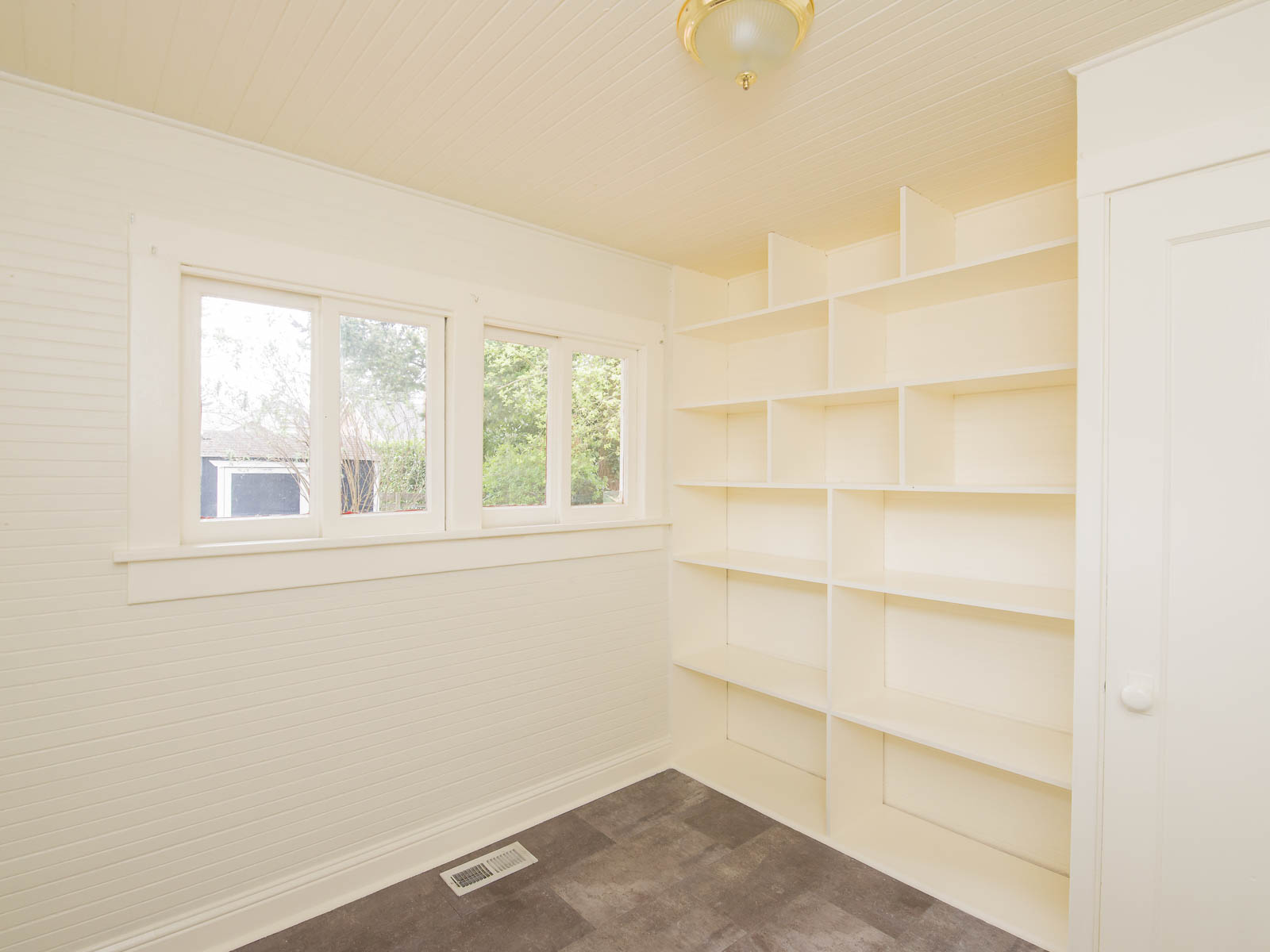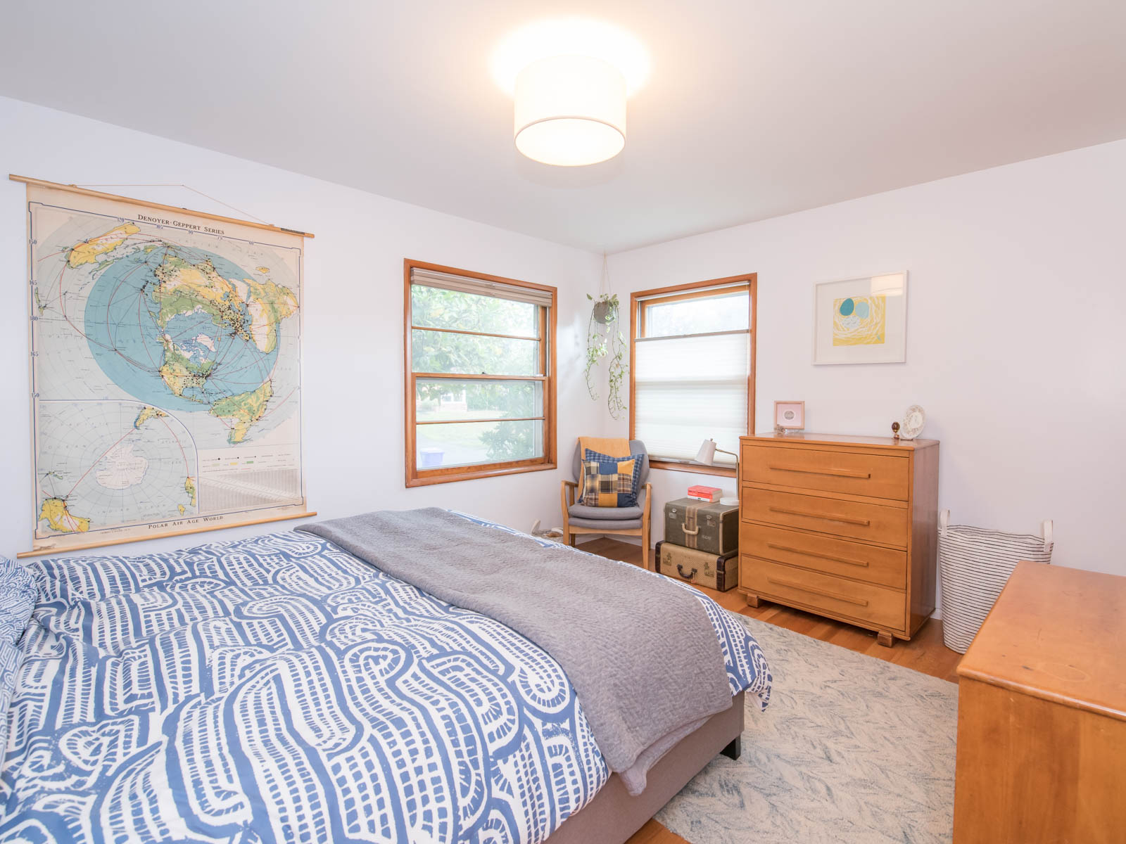 The bedrooms are upstairs. Sweet as honey fir floors, large closets + storage. The bathroom has a clawfoot tub, wall sconce lighting and vintage perfect cabinetry.