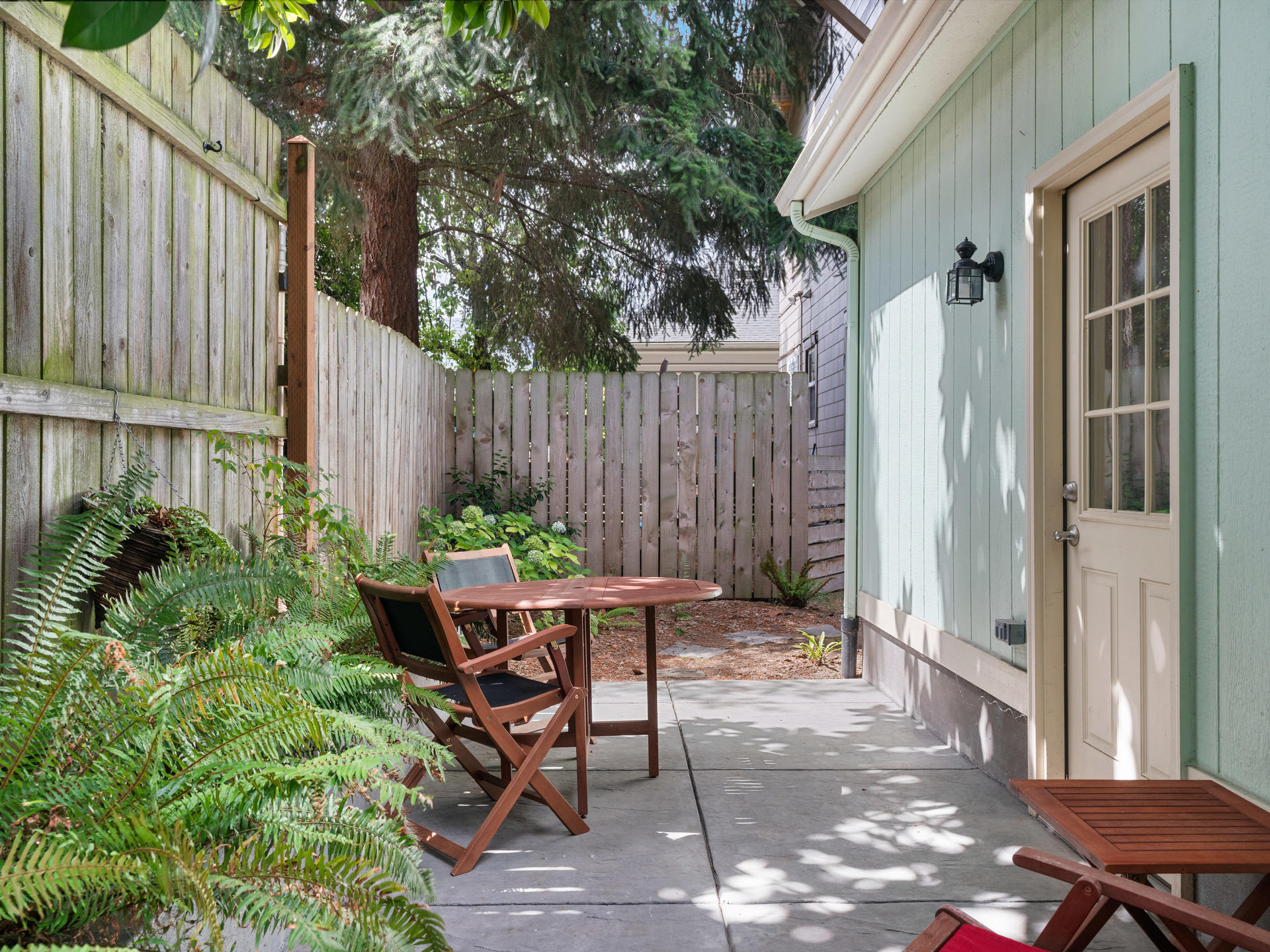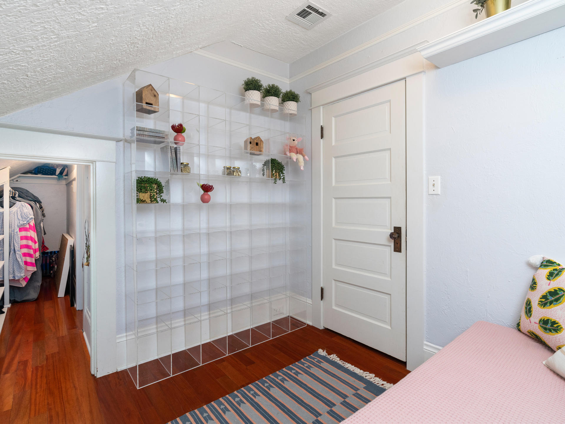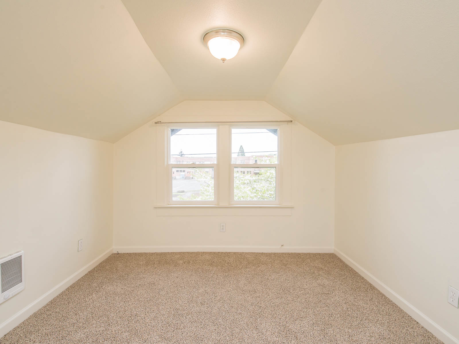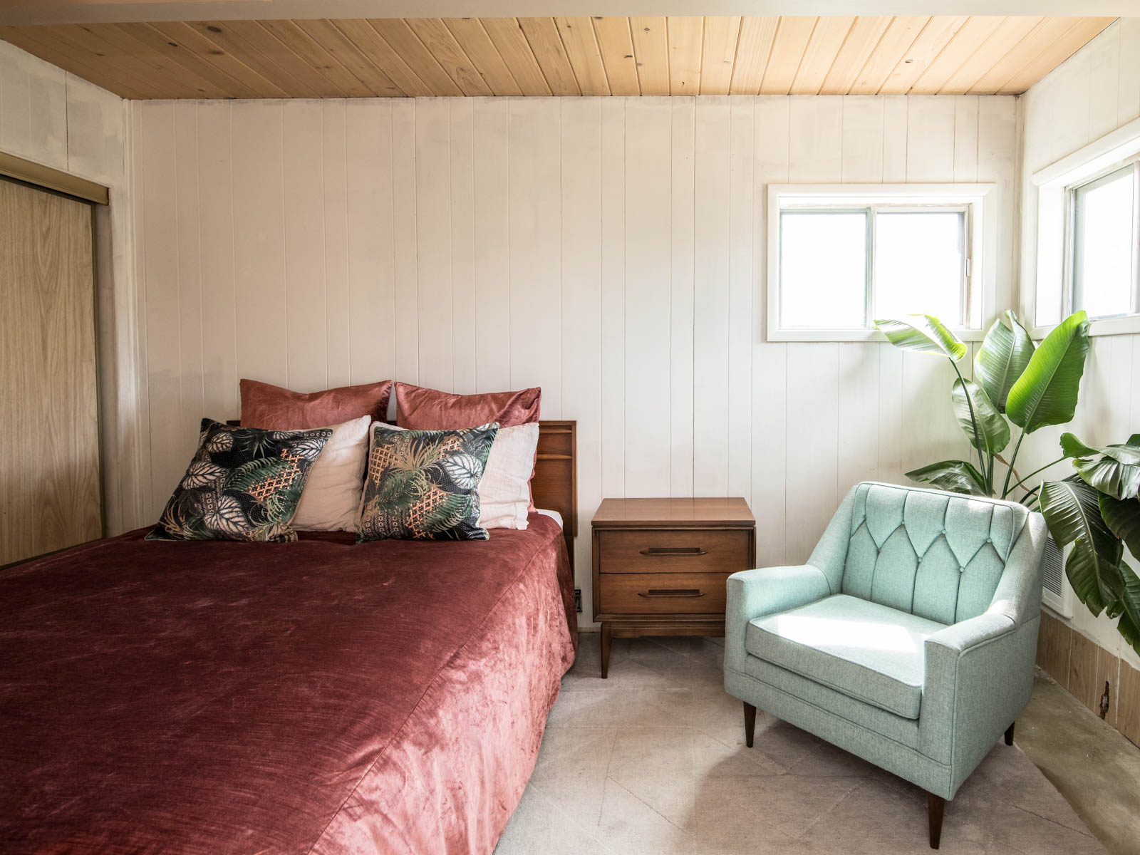 The bedrooms are upstairs. Sweet as honey fir floors, large closets + storage. The bathroom has a clawfoot tub, wall sconce lighting and vintage perfect cabinetry.