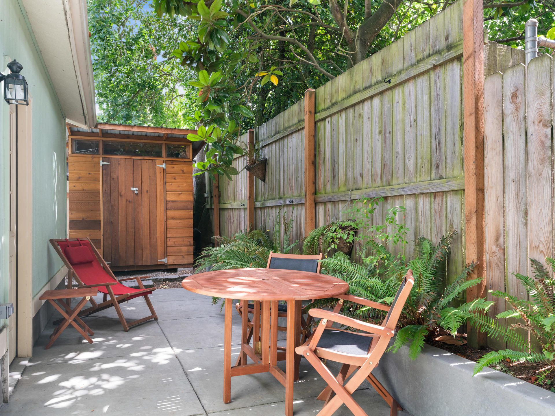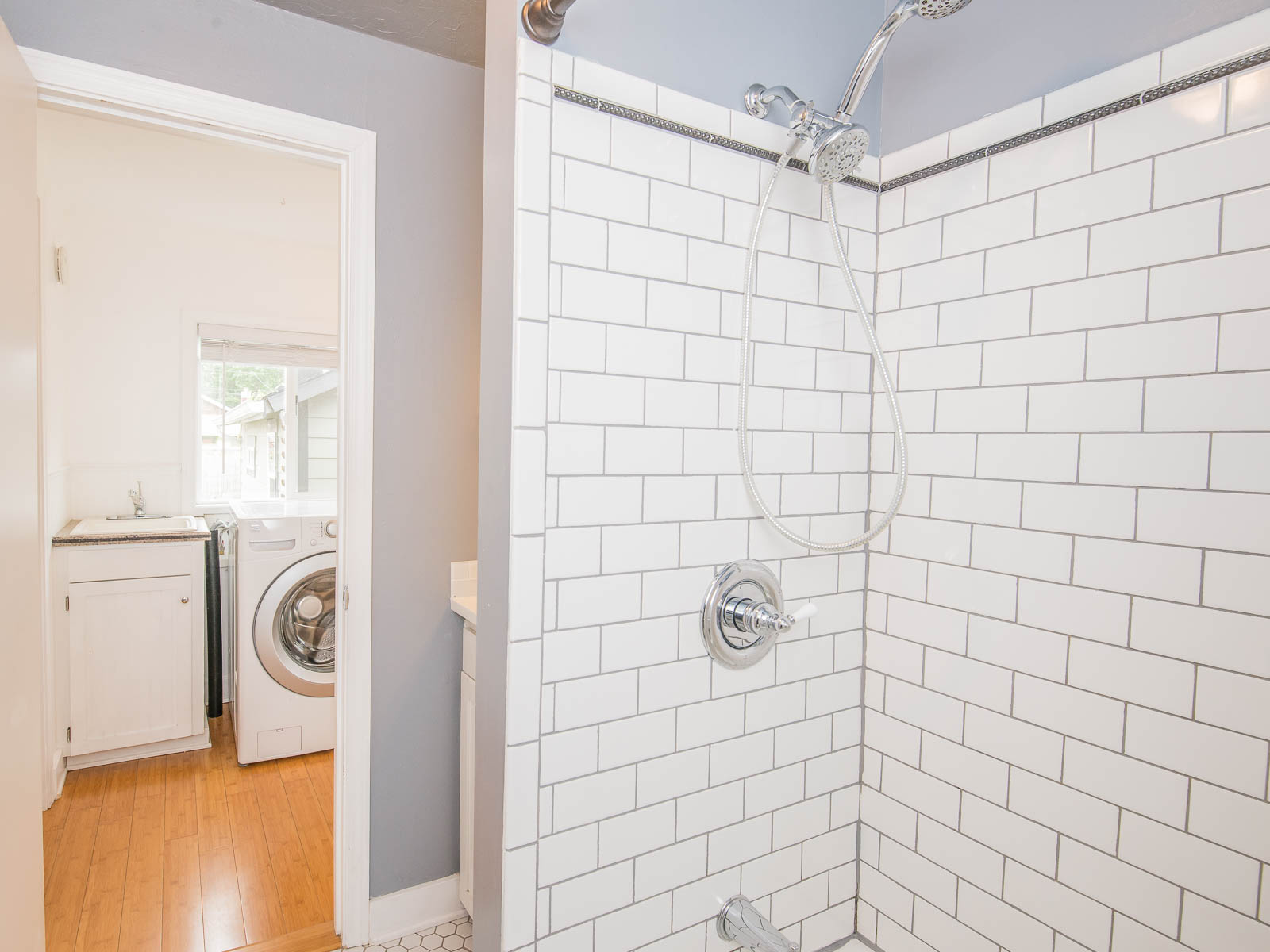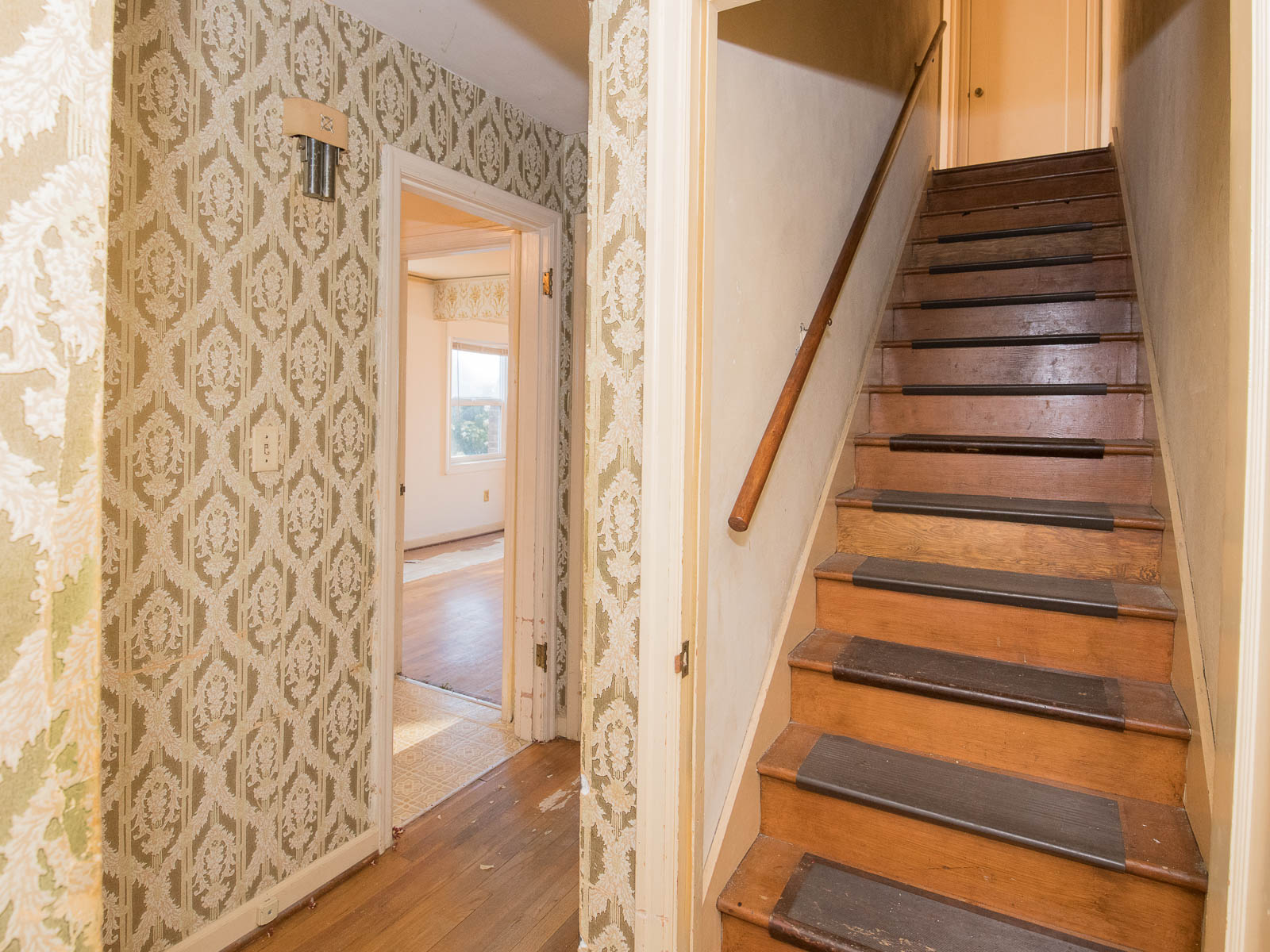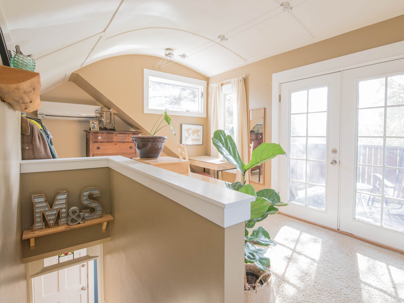 The bedrooms are upstairs. Sweet as honey fir floors, large closets + storage. The bathroom has a clawfoot tub, wall sconce lighting and vintage perfect cabinetry.