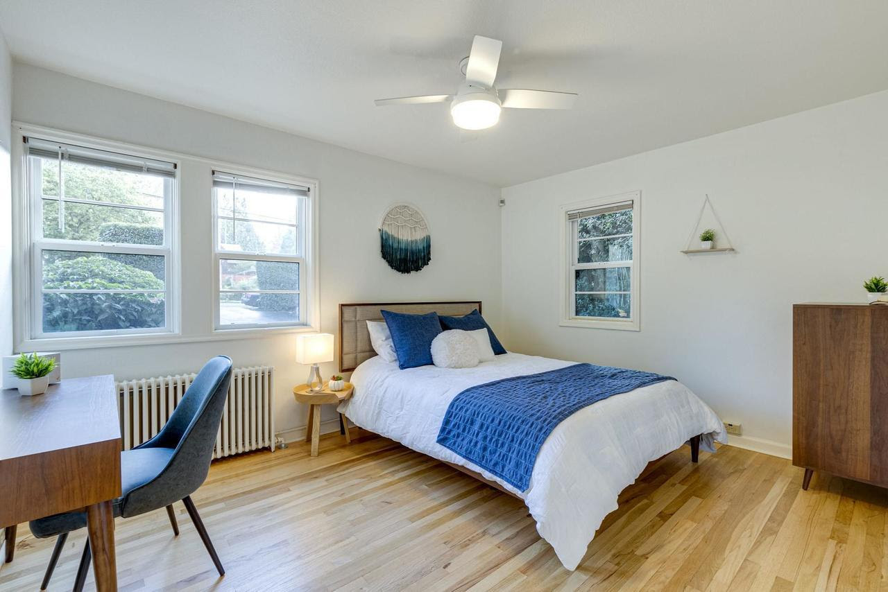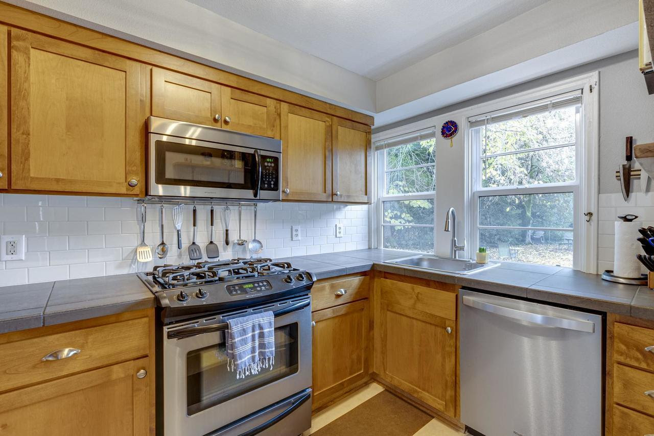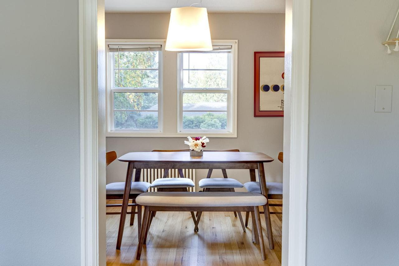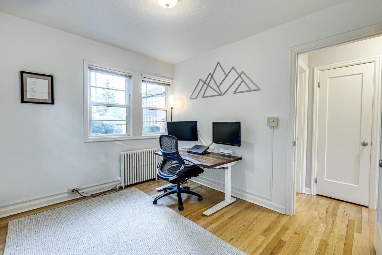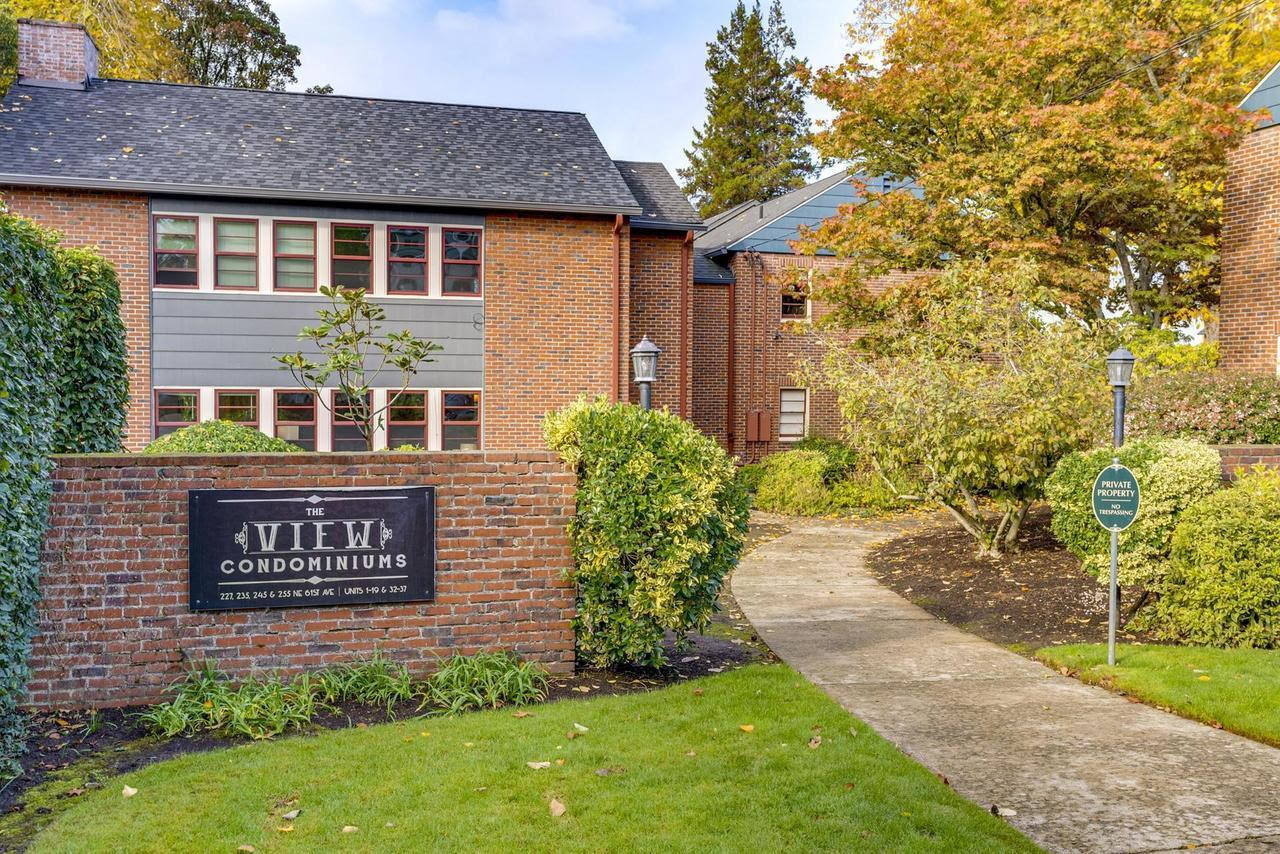 View ListingThis beautifully maintained spacious condo with original hardwood floors and cozy radiant heat is one of the best units at The View. With no shared walls, it gets lots of natural light and feels like a detached house. Hang your coat and kick off your shoes in the entry and step into a huge living room. To your right is the dining room with space for hosting friends and a Murano glass light fixture. The kitchen is beautiful and efficient with a vintage linoleum floor, stainless appliances, gas range, and beautiful wood cabinetry with plenty of storage and counter space. The two bedrooms, laundry, and bathroom are all off a small hallway at the back of the unit. Both bedrooms get lots of natural light, each with windows on two sides (fiberglass Marvin windows installed in 2015). Set within a beloved well-managed community, this condo features an idyllic courtyard with a sprawling green lawn adorned with majestic shade trees, mature landscaping, and a tranquil fountain. Located on the quietest corner of the complex, your parking space is steps away and a basement storage unit gives you a secure place for your things. Plus, your furry friends will love the community dog park! Prime North Tabor location is close to everything with an 83 walk score and 80 bike score.
