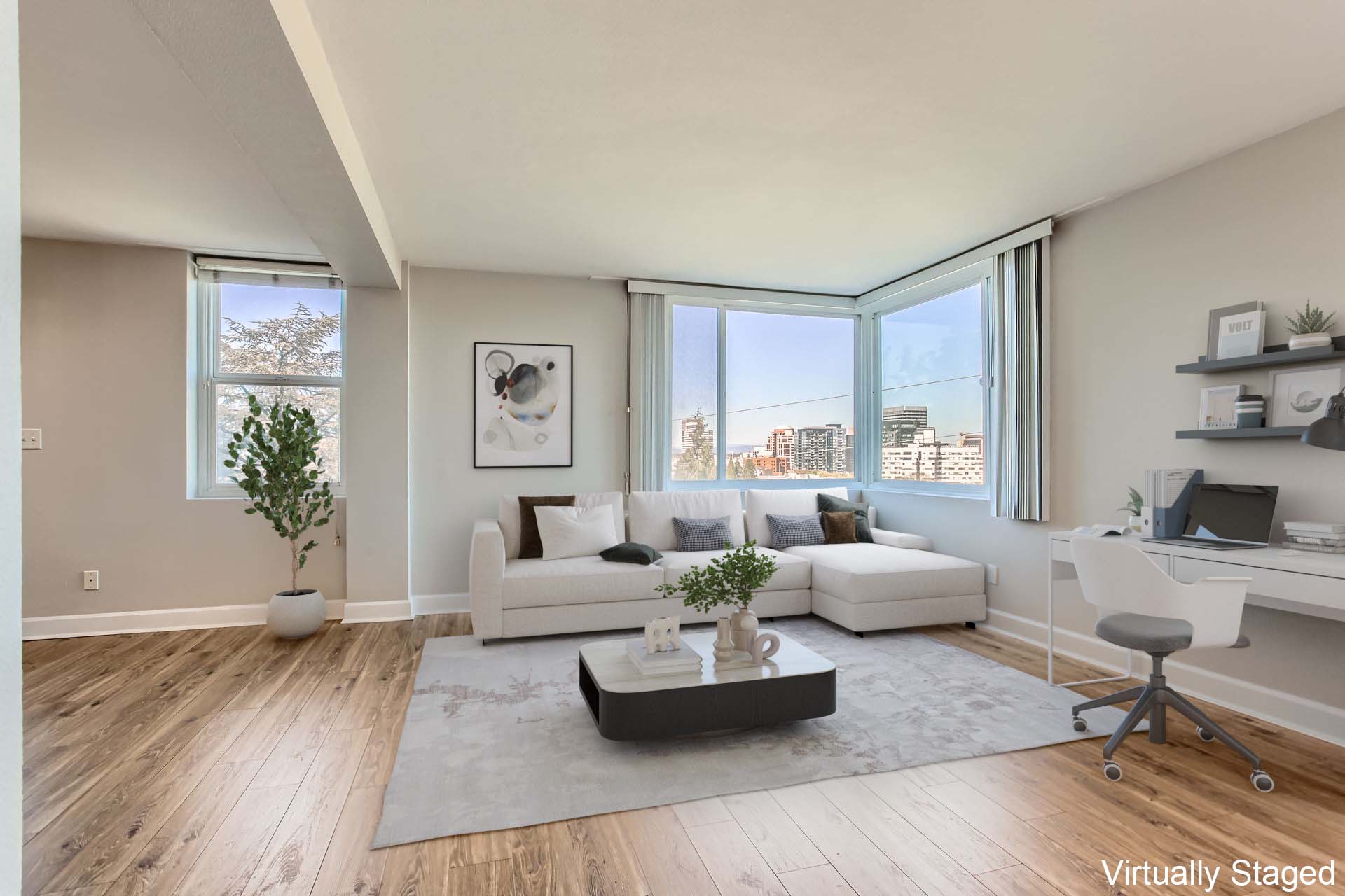 When I first toured the Cardinell View Lofts years ago I remember thinking this is a special building. It is located just south of the PSU campus, but at the foot of the SW Hills with nature surrounding it. The building was built in 1951 so it has cool mid century vibes and the cherry on top are the stunning city views. You can see all of downtown Portland and Mt Hood. What else could you want?