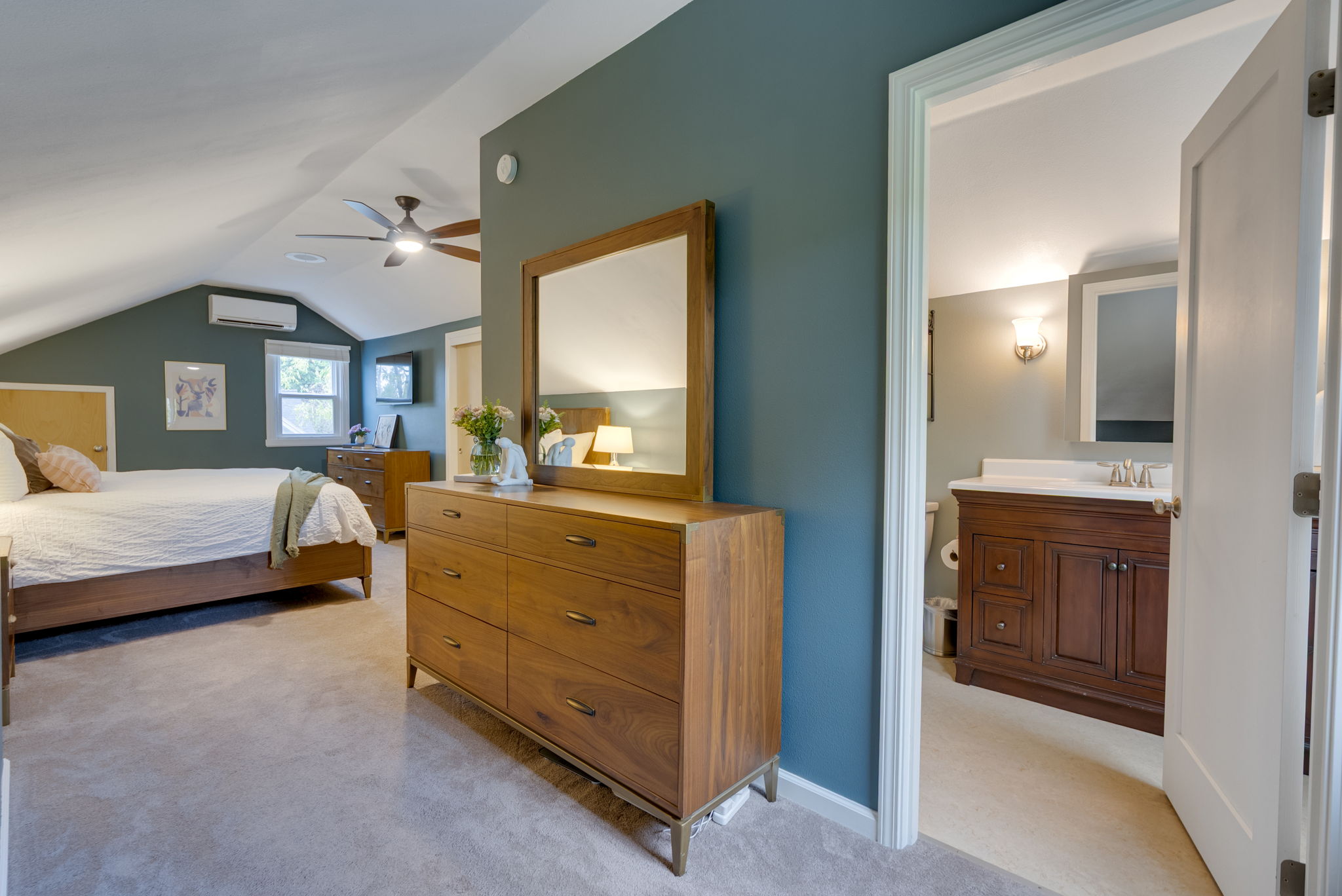 Major updates included are: full kitchen remodel with new appliances in 2023, high-efficient Mitsubishi HVAC system in 2024, new windows in 2020, wall and ceiling insulation, new siding and exterior paint in 2020, plus sewer line in 2017, new water piping in 2019, new hot water tank in 2019, and new deck in 2022.On the main level, you will find hardwood flooring, a spacious living room with large windows, a fireplace, two bedrooms, one of which has a sliding glass door leading to the backyard deck, and an updated eat-in kitchen. The lower level includes a cozy family room with a modern gas fireplace and a laundry/utility room. The upper floor features the primary bedroom suite with ample storage, a mini-split HVAC system, and an on-suite bathroom with a shower. The fenced backyard includes a one-car garage, a large patio area, and a deck made of Trex. The front yard features low-maintenance landscaping, EV charger and is located just blocks from excellent restaurants with a walking score of 80.
