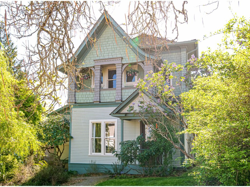 Exquisite and stylish Queen Anne with historic appeal! Swoon over the graceful curves and architectural details of the 1891 G. Storey House. This 3 bed/2 bath is teeming with authentic charm and modern amenities. Light-filled formal living and dining rooms with fireplace, soaring ceilings, and wood floors throughout. Fresh paint inside, with updated kitchen, mudroom, bathroom on the main, and stained glass windows. Beautifully landscaped yard with a pond, mature berry bushes, a greenhouse, and lots of great gardening and entertaining potential. Just minutes from downtown Oregon City, this is the home you have been waiting for!