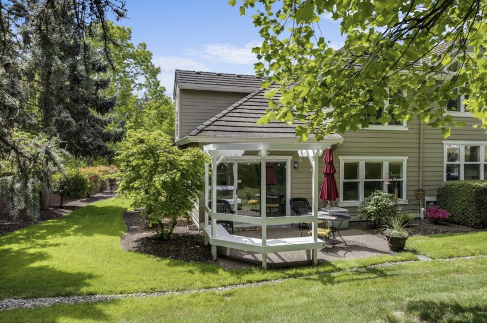 Nice and bright ends unit with lots of windows, 2 car garage. Gorgeous landscaping.