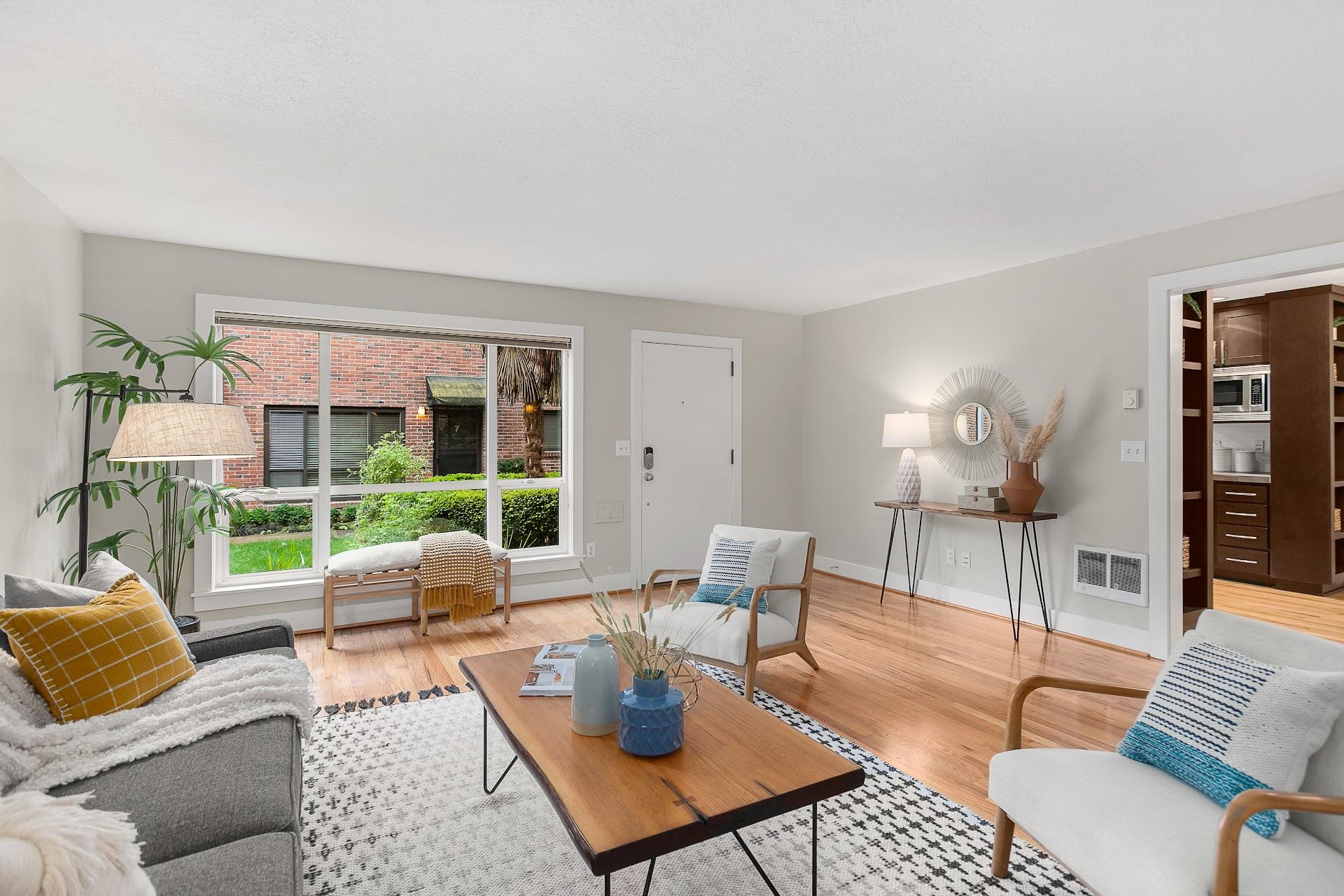 Come see this bright, quiet, inviting condo with an open floor plan, hardwoods