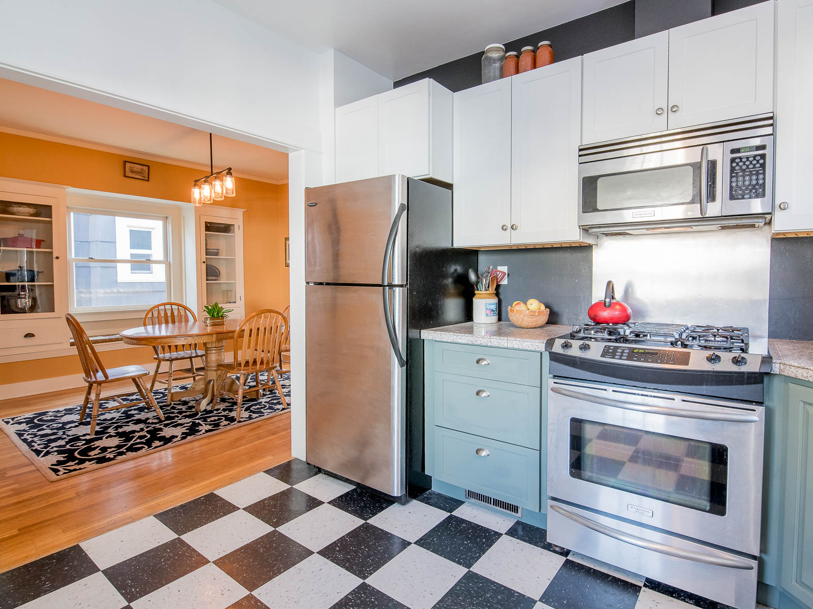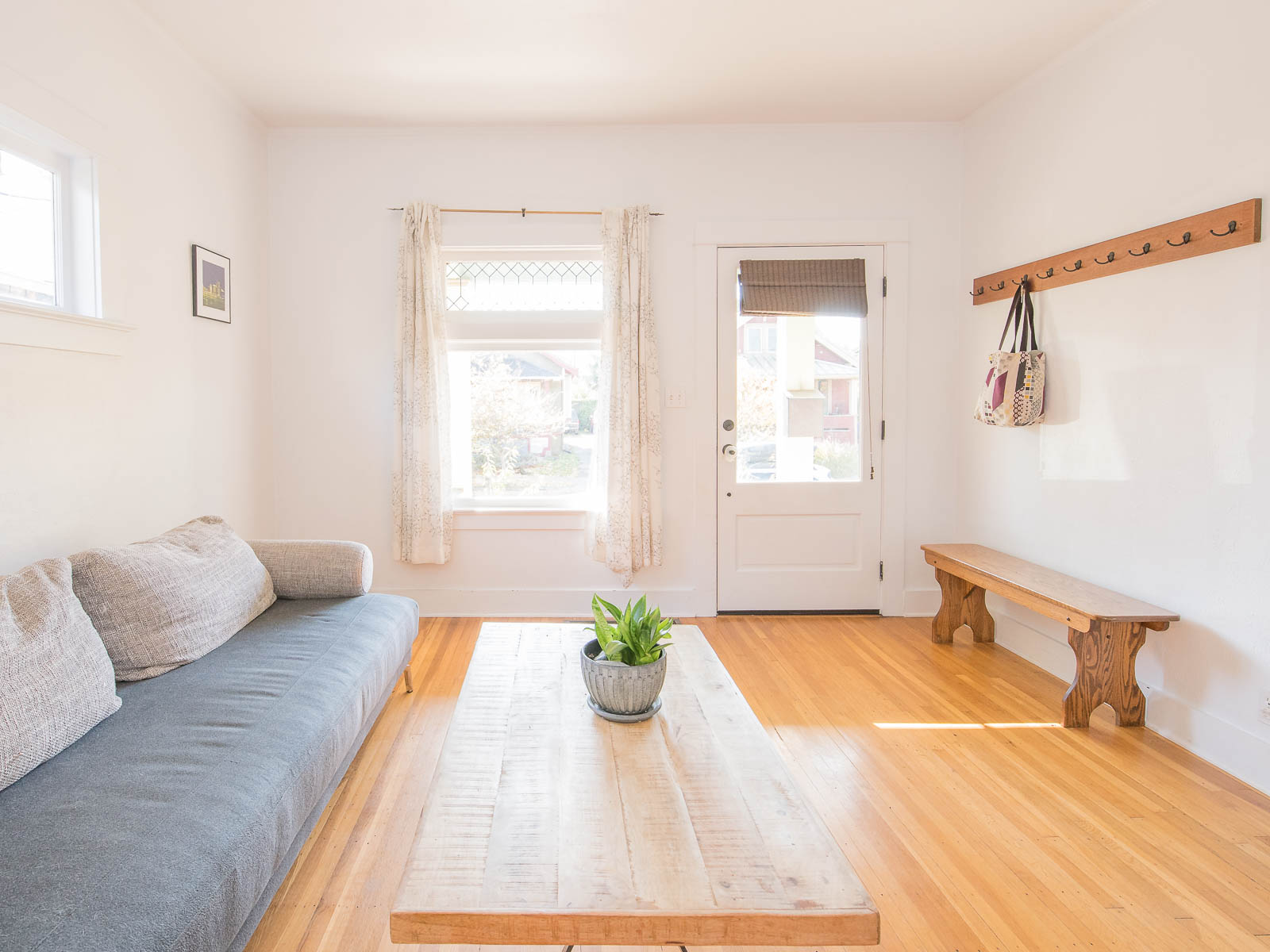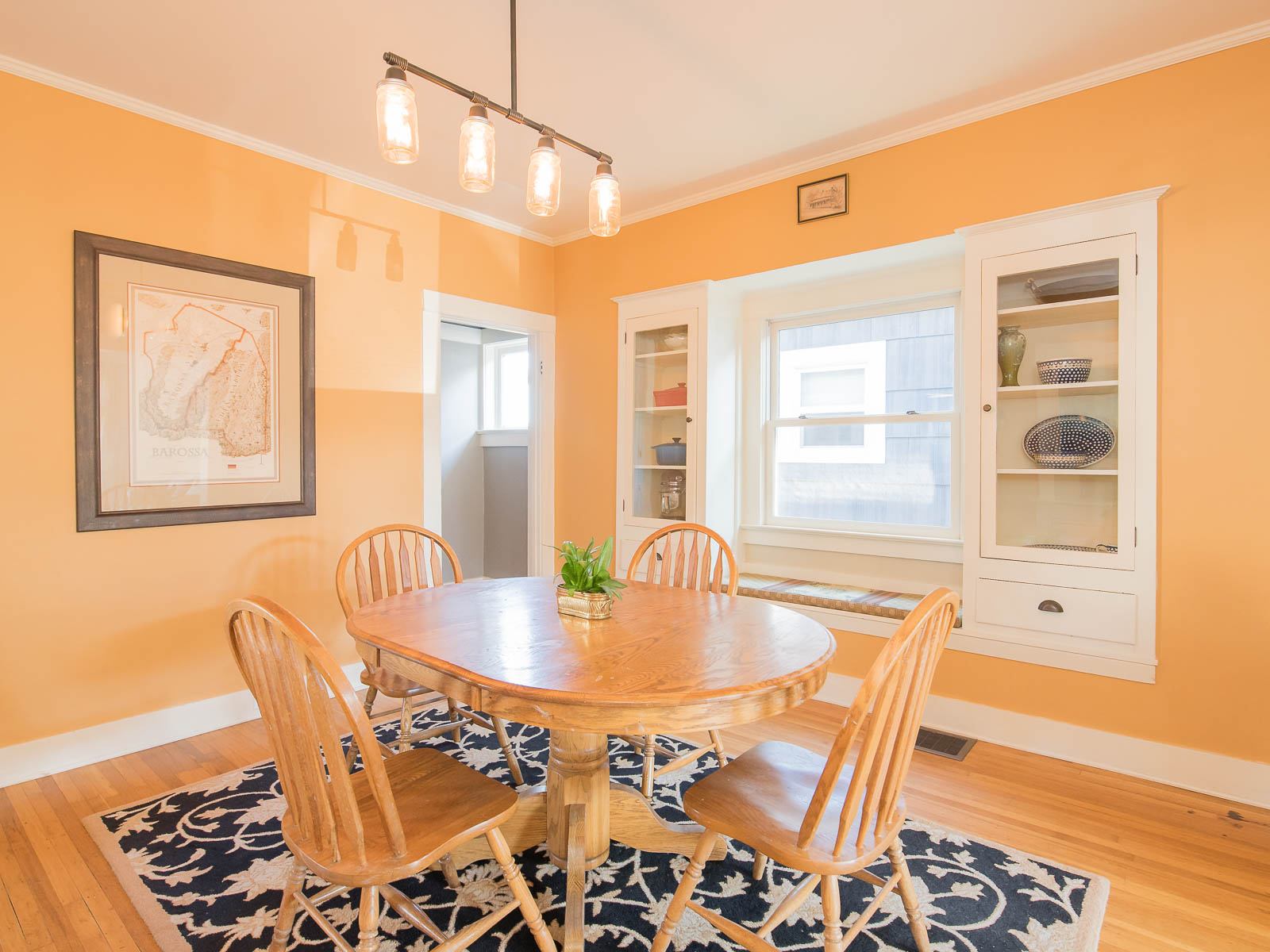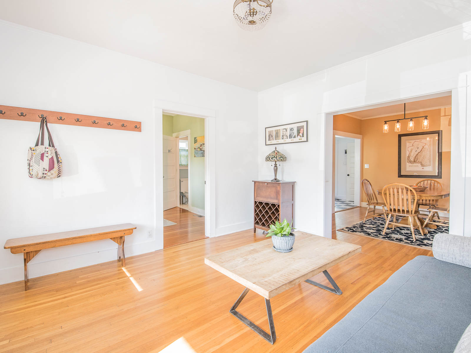 From the moment you turn onto NE Sumner Street, you have the feeling of welcoming, calm and cozy surroundings. The bright, south-facing front porch invites you home and beckons you to kick up your feet and relax. The 9’ ceilings on the first floor provide a spacious feel to the typically compact layout, but this house spans three finished floors (and each floor has its own bathroom) and boasts original hardwoods, built-in cabinets, and leaded-glass details. All of this gives the home a timeless quality. This is a house brimming with potential for design-minded owners, but absolutely turn-key and move-in ready.