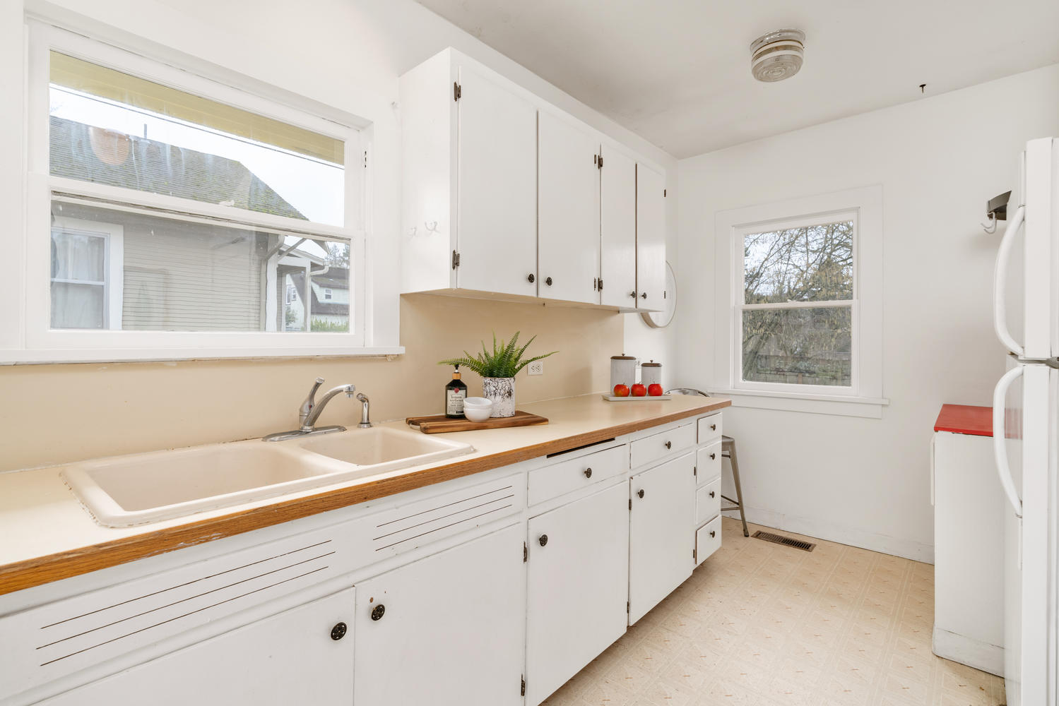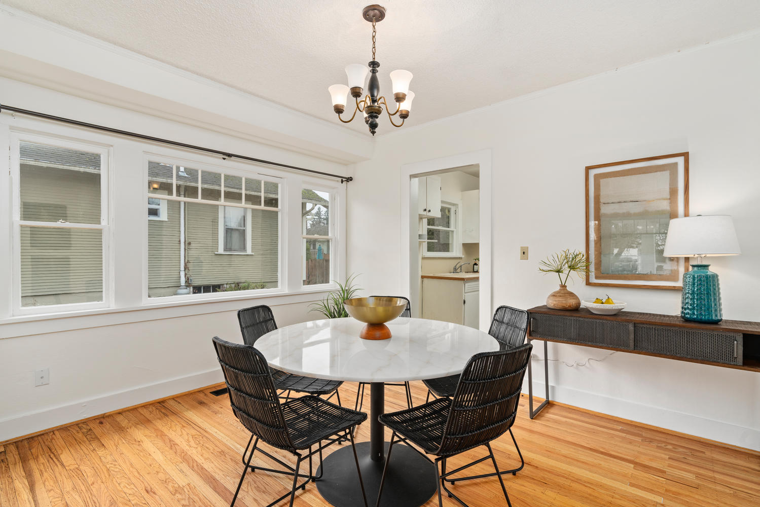 Originally built in 1926, this classic Roseway bungalow stands proudly on one of the community’s most cherished streets. From the moment you approach the home you are greeted by its rich architectural details that include deep, noteworthy soffits, classic cedar lap siding, a stately hip roof and prominent front porch. As you enter you will find a floor plan with efficient and expansive spaces which boast refinished hardwoods, a wood burning fireplace, original millwork and an elegant flow to the formal dining room. The dining room itself acts as a nice axis point allowing you direct access to both the adjacent bedrooms and the kitchen. The kitchen’s layout is noteworthy for the size of the home and affords the next steward numerous opportunities to put their own finishing touches on the space.