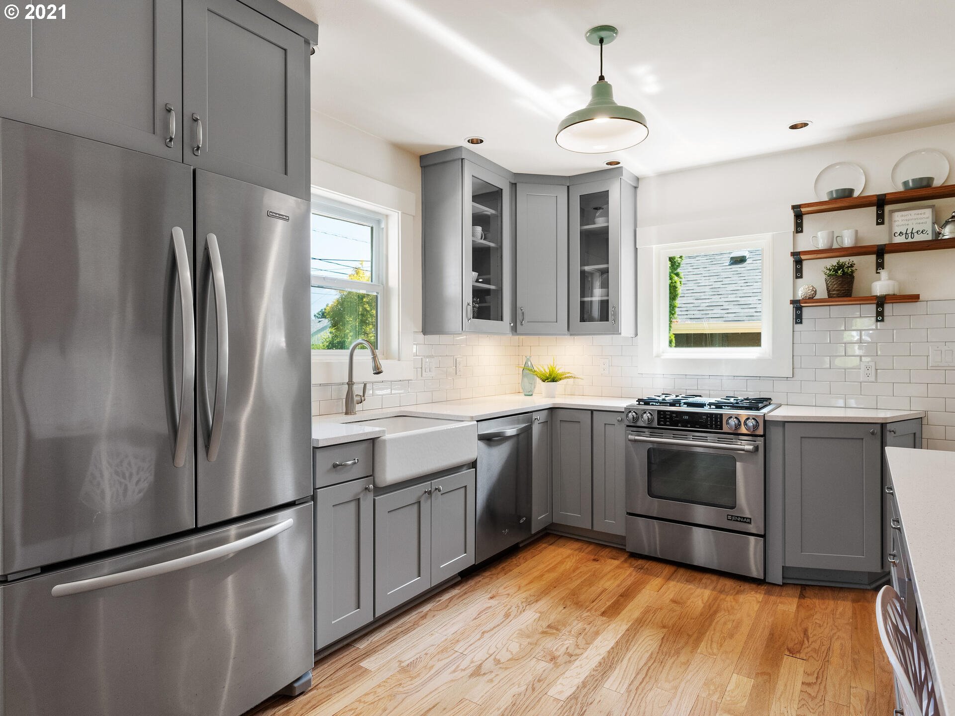The Charm Alarms are sounding for this adorable bungalow perfectly nestled on a sunny corner lot in the heart of S. Tabor. Dialed in and cute as a bug’s ear inside & out. Open floorplan, freshly remodeled kitchen & bath, loads of storage, smart spaces & updated, high-efficiency systems. Amazing outdoor areas include: massive fenced yard, sleepy front porch, hop-covered dining pavilion, detached garage all w/vistas to Mt. Tabor. Super quiet street, great neighbors & community. My buyer is soooo happy!