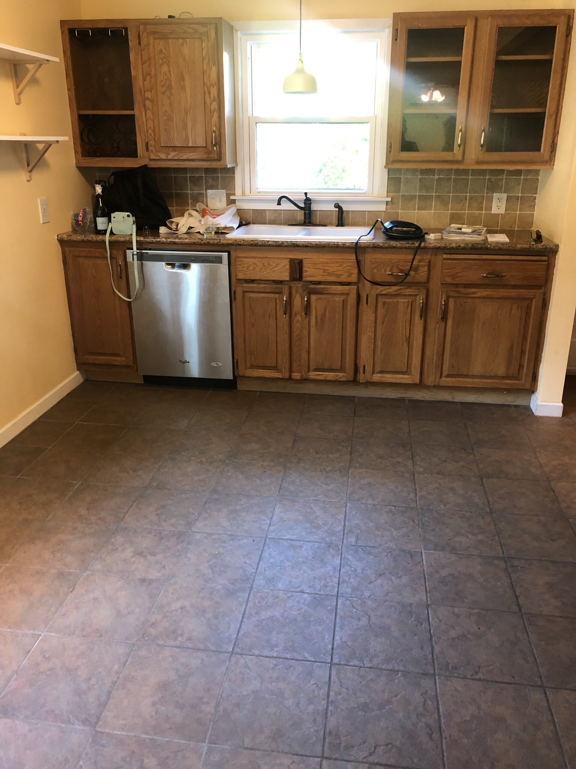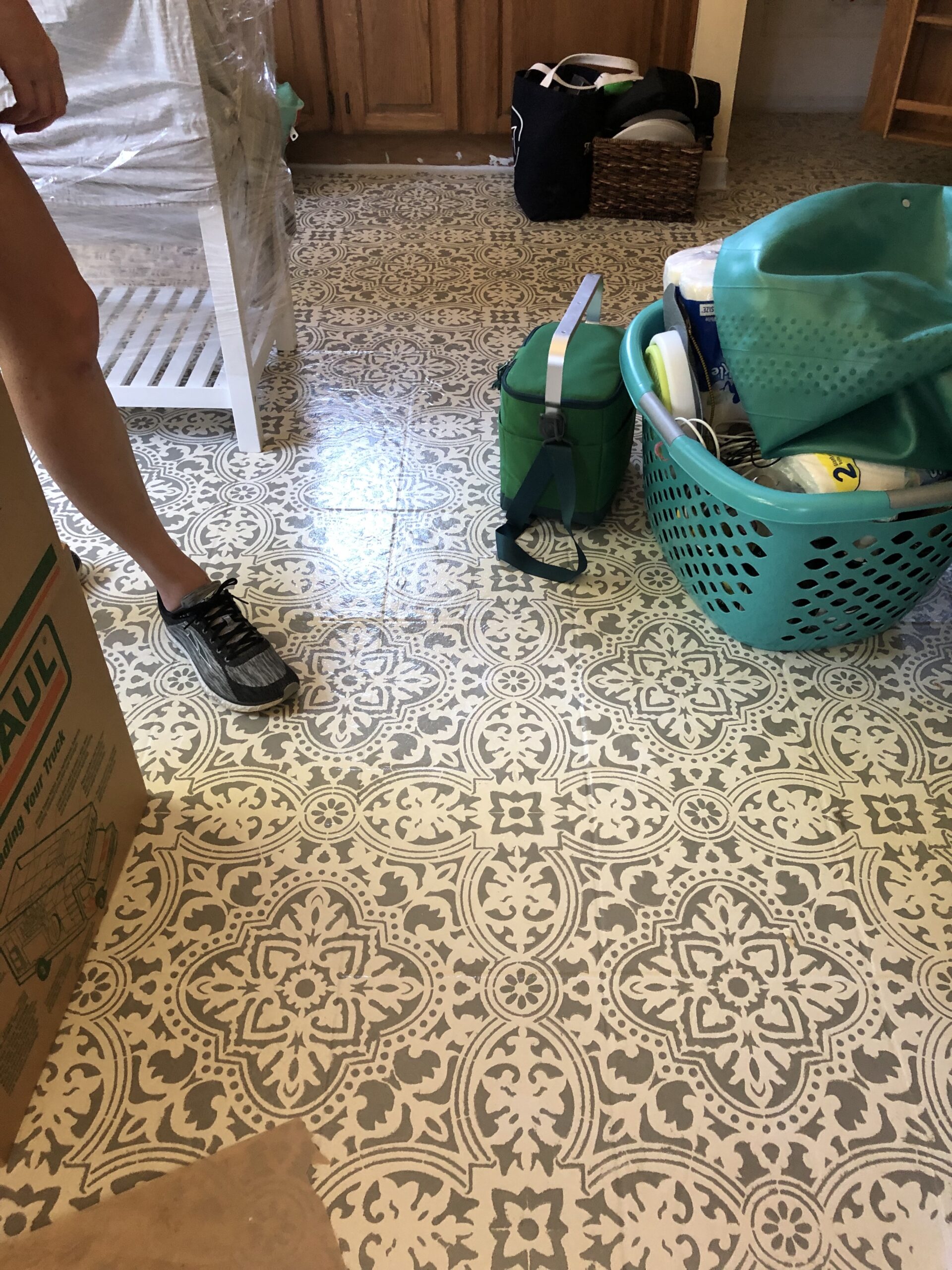 Her little-dream-that-could quickly transformed into an awesome reality. She scored a bangin’ little ranch in Milwaukie and a spot as one of our beloved neighbors! The house has great space overall, but it was in need of a little updating in the kitchen. She told us about this grand plan to paint the tile floors in the kitchen. I’ll admit, at first we were a bit skeptical. But, after a quick pop-by a week later, the floors look a-freakin-mazing! Check them out can you even?! She even finished them with a clear coat of deck paint so they will stay perfect for years to come.