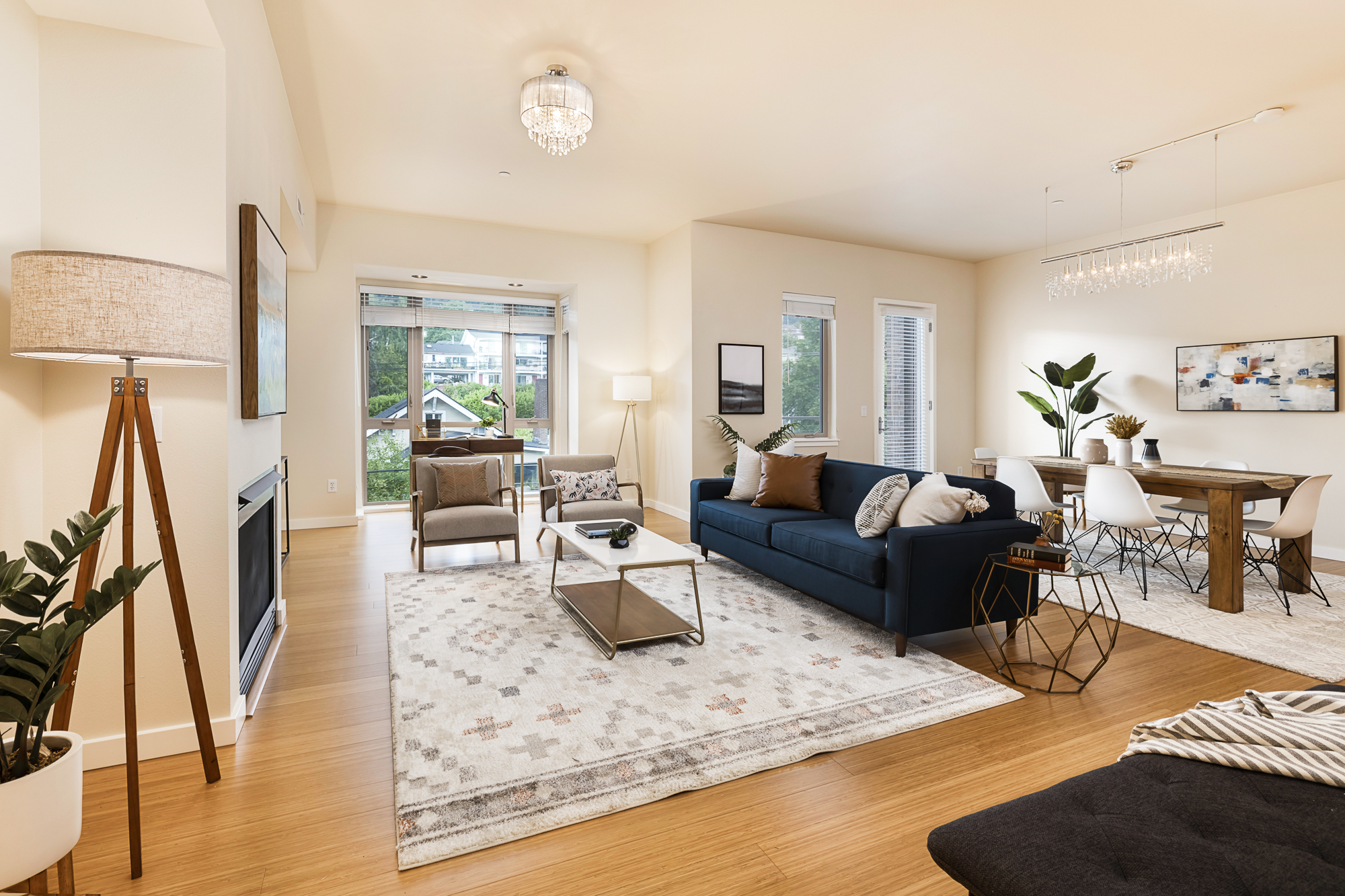 PENDING! One level living in the Corbett neighborhood! This spacious 2 bed/2 bath condo features gorgeous bamboo floors and tall ceilings in a 22 unit community. Floor to ceiling windows drench the space in light with lovely territorial views. Open concept living with a gourmet kitchen and gas fireplace. 2 decks to enjoy the outdoors. California closets in master and in unit laundry. Secure, deeded parking(2 spaces) and storage. Amazing location- S Waterfront, Tram, OHSU, streetcar, bus, and restaurants