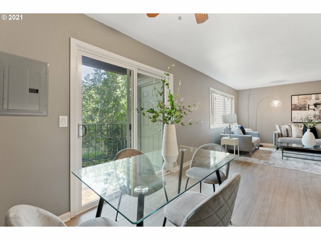 Adorable condo, waiting for you! Remodeled kitchen w/new cabinets, ss appliances, tile & eating nook. Relax in the spacious primary bedroom w/walk-in closet. Enjoy the outdoors & forest like setting from your private patio. Other features include new flooring throughout, interior paint, washer & dryer hook-ups in the unit & extra storage closet. Close to parks & shopping! Come experience the joys of main level living!