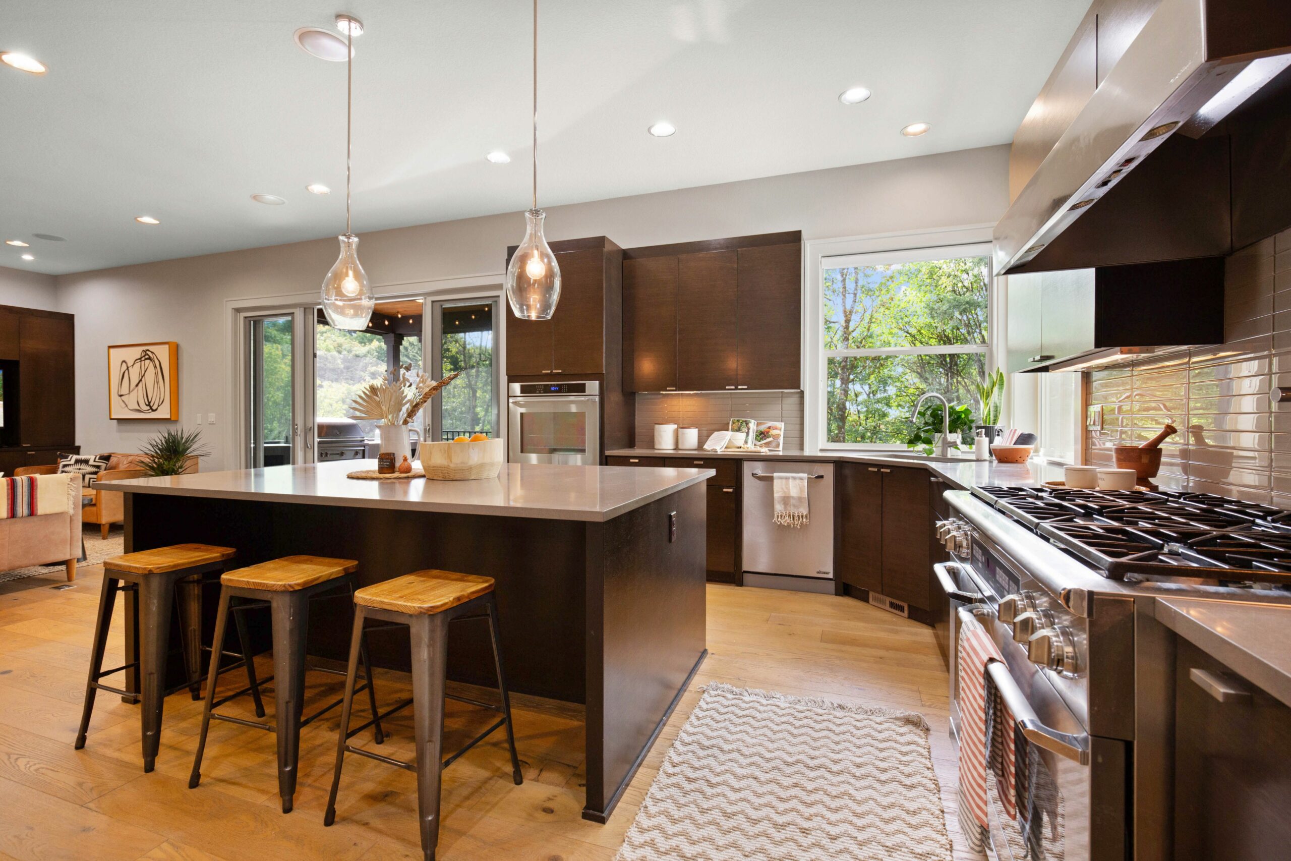 View ListingLocated in the Northwest Hills neighborhood, this custom home built in 2015 backs up to protected lush greenery giving it a modern, private feel only 15 minutes to downtown. Built with attention to detail, features include white oak hardwood floors, a floor to ceiling tile fireplace, Dacor appliances, and slab quartz counters throughout. The spacious 5,226 square foot floor plan has 8 bedrooms, 4 bathrooms, and an exercise studio perfect for a multi-generational home or guest quarters. The owner’s suite includes a balcony, walk-in shower, jetted tub and 2 walk-in closets. Outside, enjoy the view year round with two covered decks, one with a built-in grill and bug screens, recessed lighting and wired for sound.