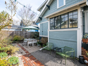 The property boasts mature and tasteful landscaping throughout, with multiple places to kick back and relax. The front porch and swing are perfect for watching the day drift by, whether it’s sunny or rainy. The south veranda catches sweet light all day, but the showstopper is the back patio: a private oasis for fresh air together time. The corner lot sits high off the street and provides extra privacy inside the home. There is a detached garage for shop space and gear storage.