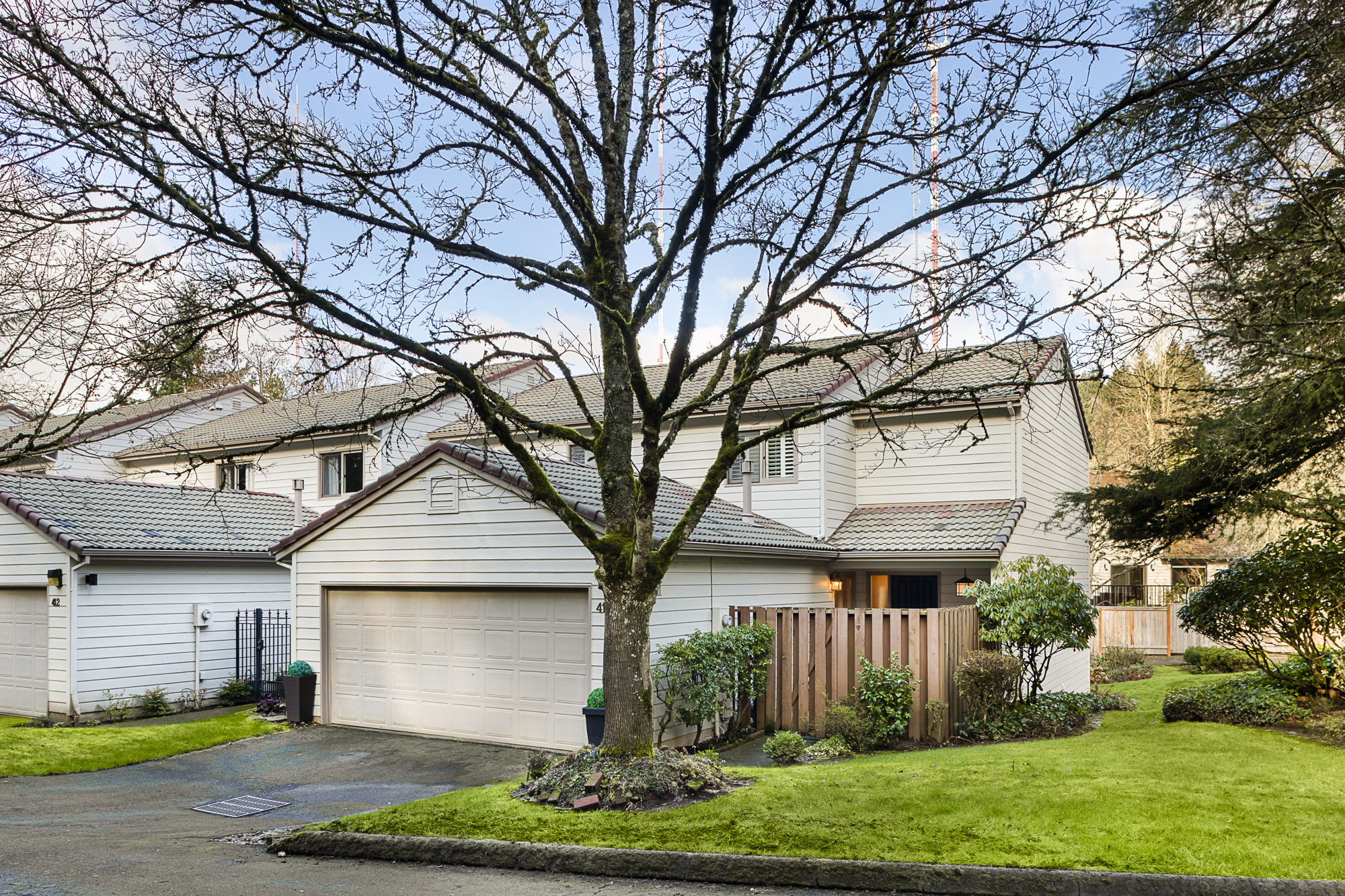 Corner townhouse unit in park-like setting with the space of a detached home but the maintenance benefits of a condo! New: hardwoods on main, deck slider, water heater, A/C, gas fireplace apparatus, light fixtures, upper carpet, interior painting, attic fans and wooden shutters. Lots of closet space, and great storage in the attached two-car garage.