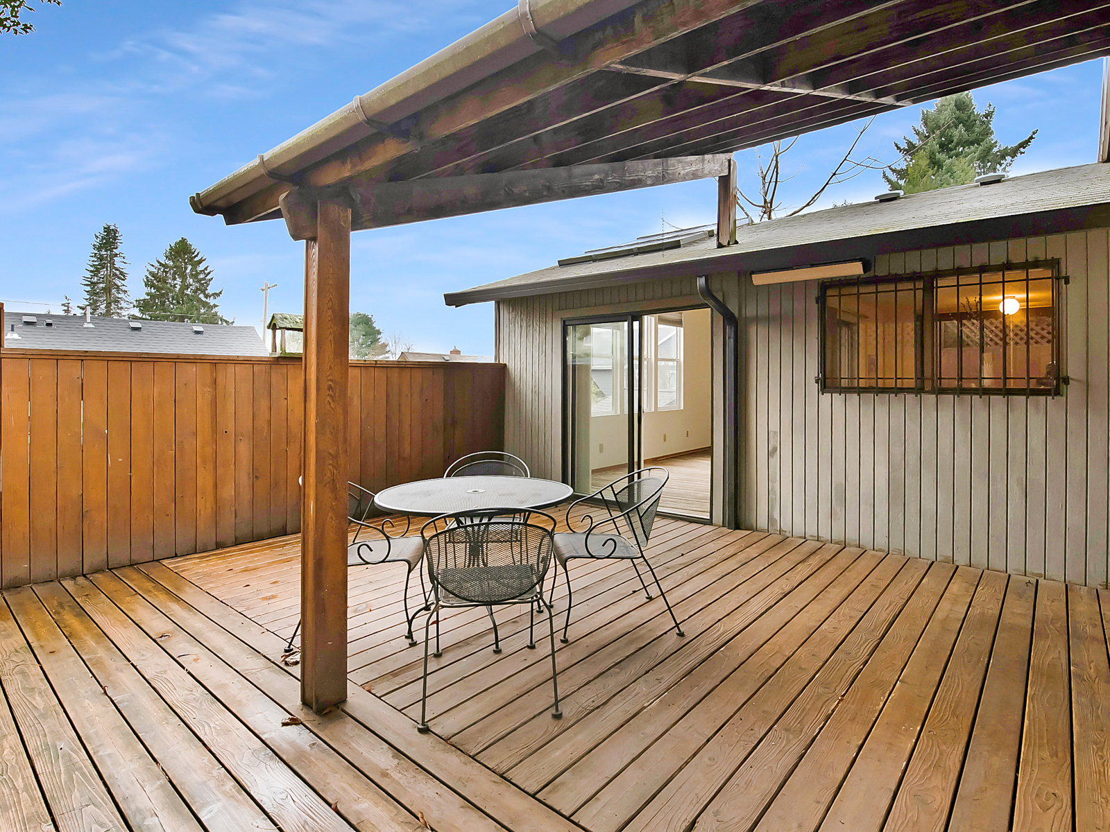 View ListingExperience living in the heart of Mount Tabor just blocks from the park, trails, local shops and neighborhood hot spots like Portland Nursery and Coquine. Nestled in on a quiet dead-end street, you will find this charming 1978 ranch tucked-in and surrounded by greenery. Step inside to a spacious living room that features parquet hardwood flooring and a wood burning fireplace to cozy up to on those colder days. The living room leads to an oversized kitchen with generous storage and skylights for an abundance of natural light. Sliding doors open the kitchen up to a secluded, fully enclosed back deck for private meals alfresco. Down the hallway are two additional bedrooms that share a full bathroom and lead to the primary suite complete with its own full bathroom and sitting area. Sliding doors allow access to a light-filled sunroom. Additional storage can be found off the two-car garage in the mudroom where the laundry is located. Come make this gem your own!