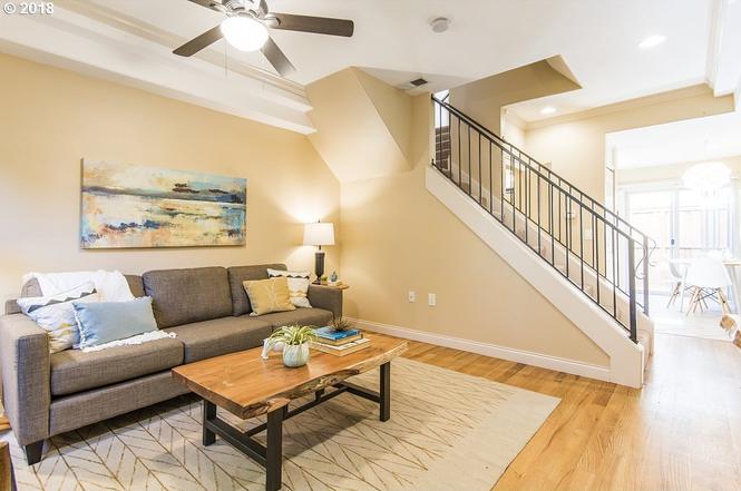 Built in 2008, this gated townhouse features beautiful hardwood floors and vaulted ceilings, tile and granite countertops and a fenced deck. Easy access to East Portland amenities, MAX and freeway access, bike paths, shopping, dining and parks made this the perfect transition for these first time home buyers.