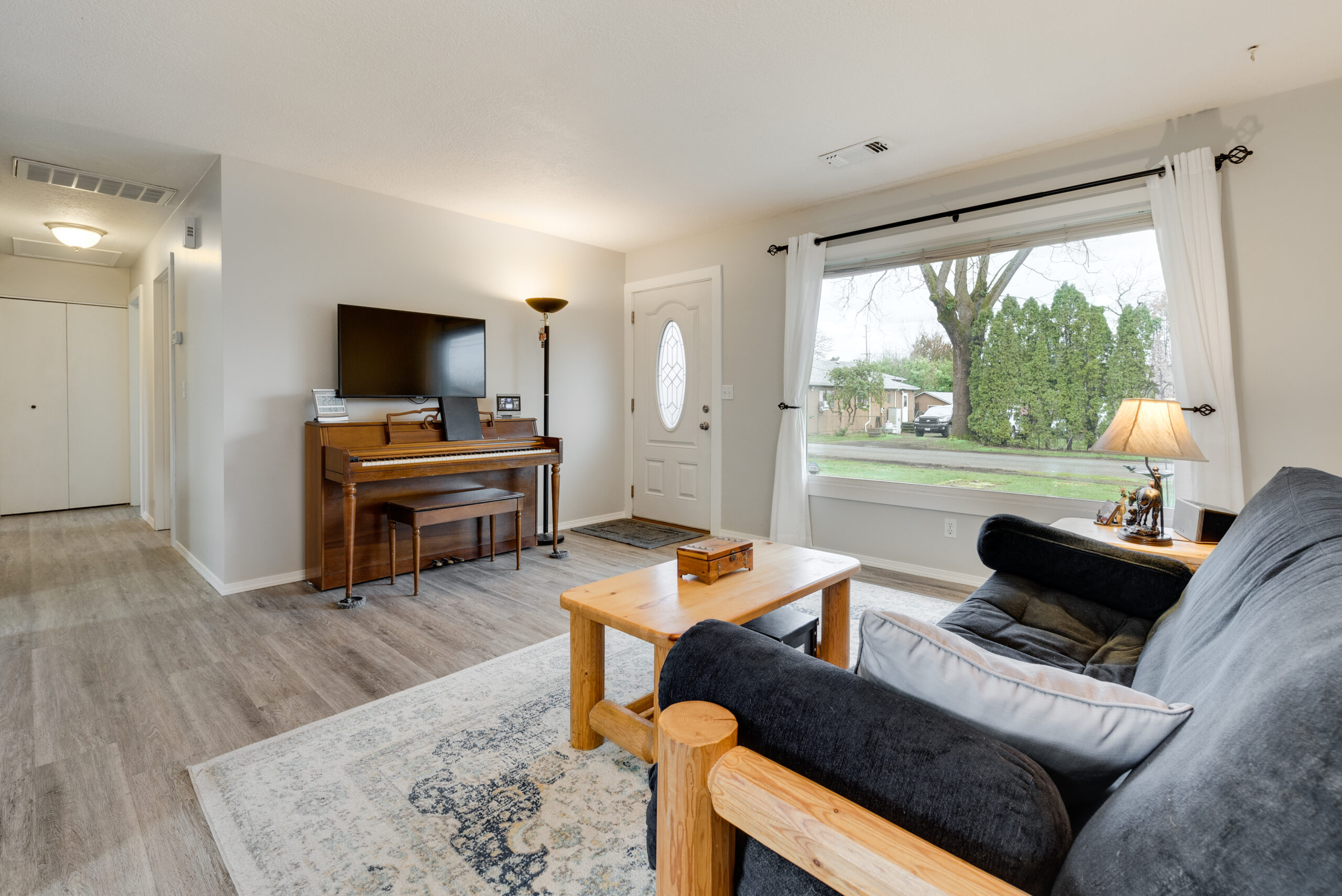Light and bright updated home near Lents Park! Move in ready with fresh paint, new flooring, newer siding, efficient furnace and newer windows. Open floor plan with spacious kitchen and great yard access. Flow of light is enhanced by the large windows and big dining room slider. Attached garage with laundry. Circular floor plan. Near schools, park and Pickles baseball home field! Biker’s paradise score of 91! Home energy score of 6.