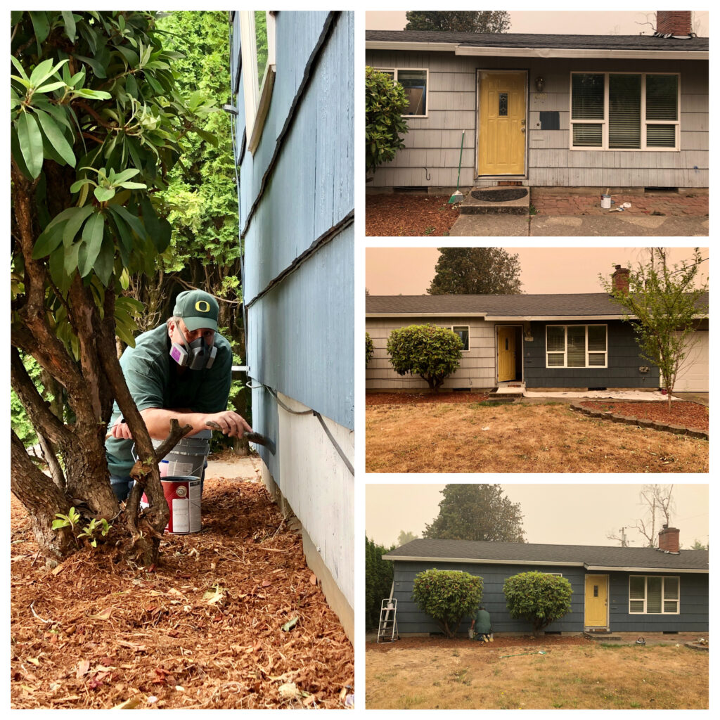 Chris and I are not letting anything stand in our way to meet a deadline for a clients home. This fixer is due to hit the market in a week. Our workers haven’t been able to get as much done during the 3 week time frame as we were given. That’s when we pull out our BIG brushes and get to work. Here is my dearest work partner painting away along side of me. Our clients don’t know that we are the one’s painting the exterior of the home and we don’t plan on telling them. When you give someone your word that you will make it to market on a chosen date, then you suck it up and do whatever is needed to make that date. I love how Chris and I work together.