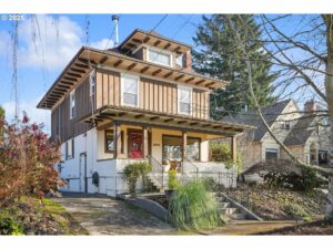 This one is my listing, located at 2344 NE 55th in the Rose City Park neighborhood. Built in 1910 and cared for the past 50+ years by one family, one of whom was a wood worker, some of the original woodwork has been rebuilt, including the main staircase and millwork around the doorways, in keeping with the original. The house still has the quintessential Four Square feel with a big front porch, large rooms and bright light from large windows. With 3 bedrooms, 2.5 baths in the house, plus 1 bed and bath in the separate guest house, it’s priced at $785,000.