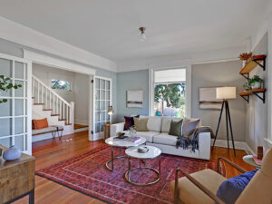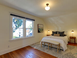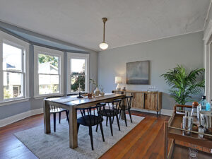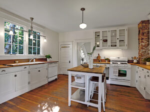 View ListingAlberta Arts Classic Farmhouse. Wrap around porch, vintage mouldings, flooring, hardware & lighting. Classic layout; 3 bedrooms upstairs, entry w/balustrade, formal living & dining rooms with high ceilings. Kitchen features working island, walk-in pantry and backyard access. Set up above the street on a private, sunny lot just a block from your abundant Alberta amenities.