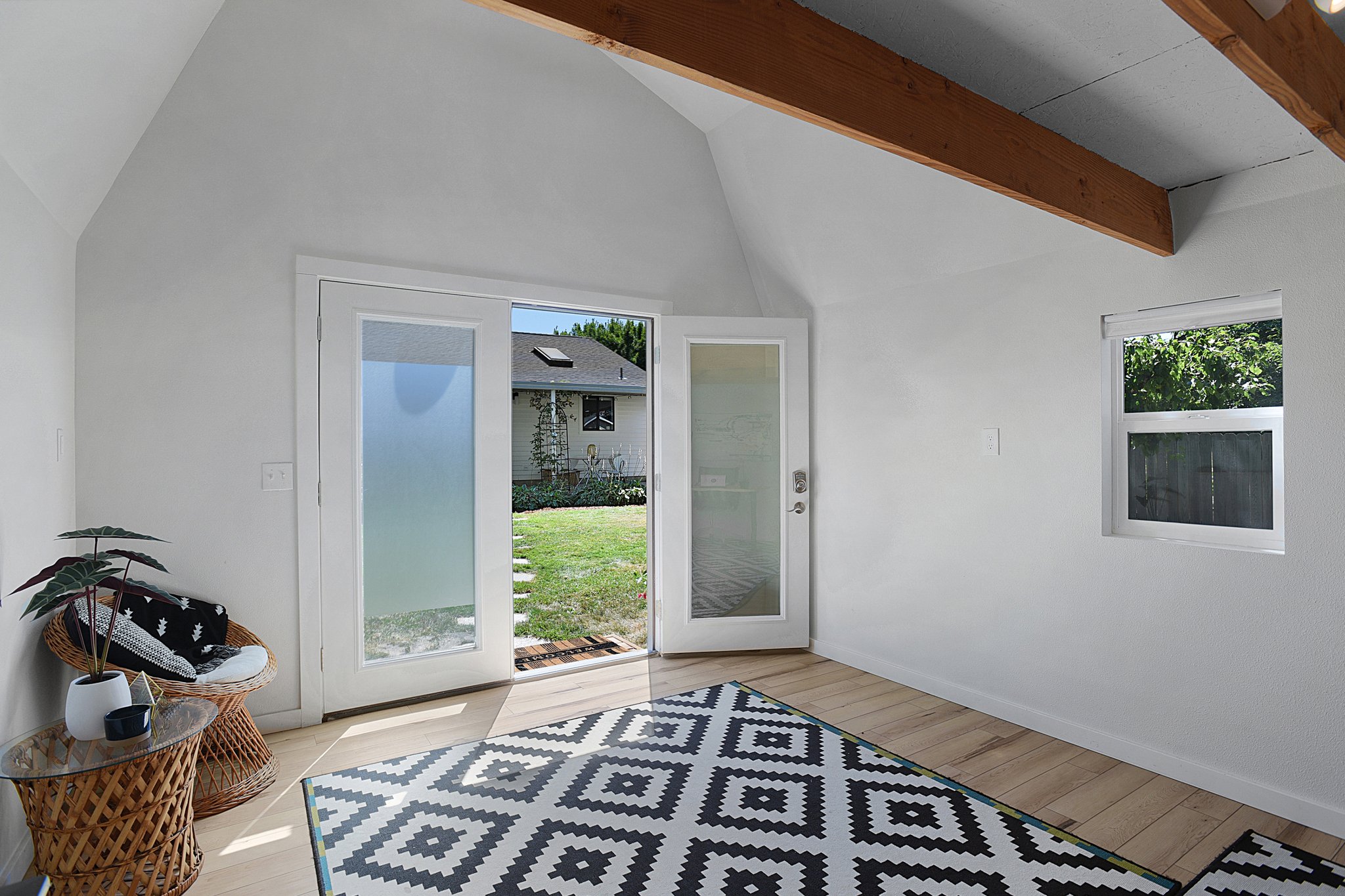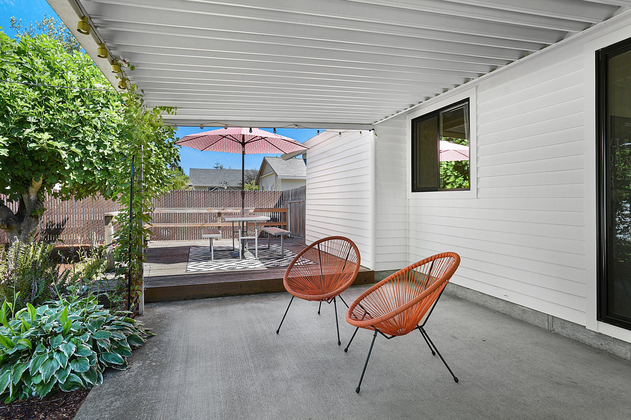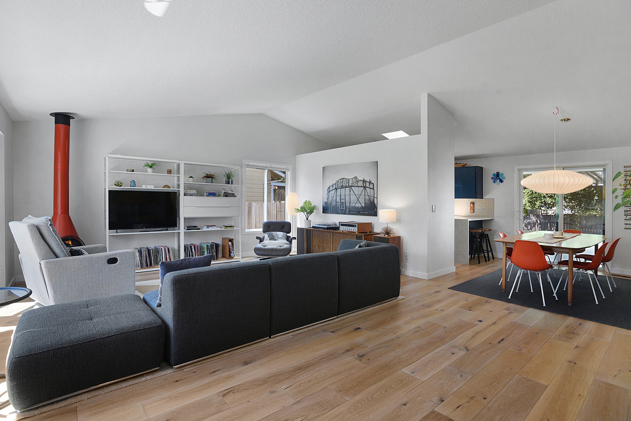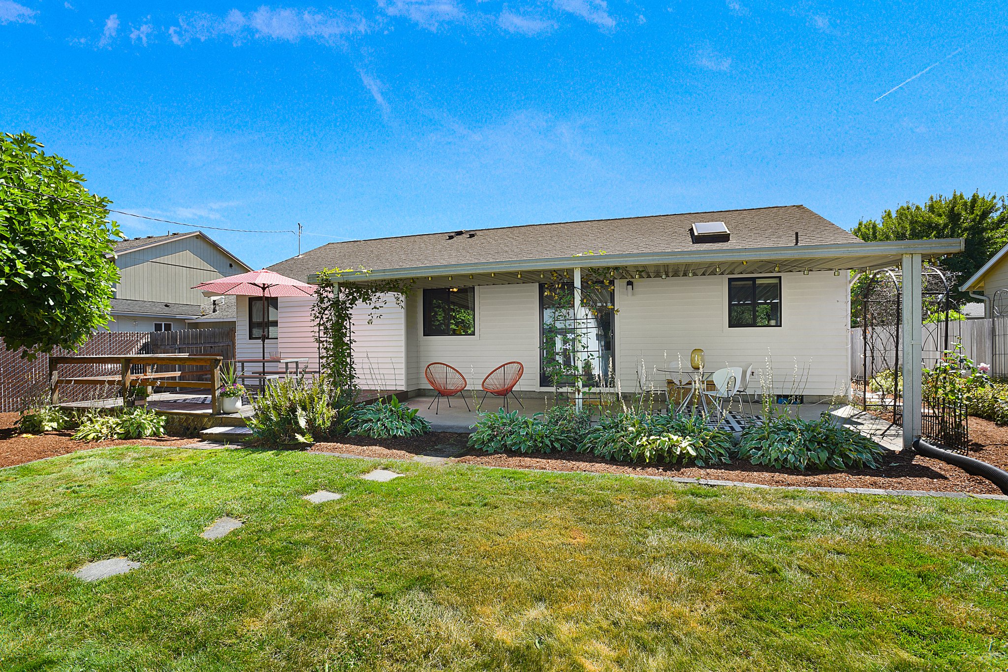 Ardenwald ranch with an upgraded midcentury aesthetic. Spacious living room with vaulted ceilings and premium engineered wood floors that flows into the remodeled kitchen with waterfall countertop and custom tilework. Relax on the covered patio that overlooks the large backyard featuring mature plantings and detached finished studio office space. New paint, new windows, updated lighting, refreshed bathrooms, solid systems. Ideal location a mere five minute drive from Sellwood and Woodstock hotspots. HES=7