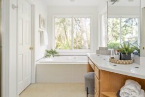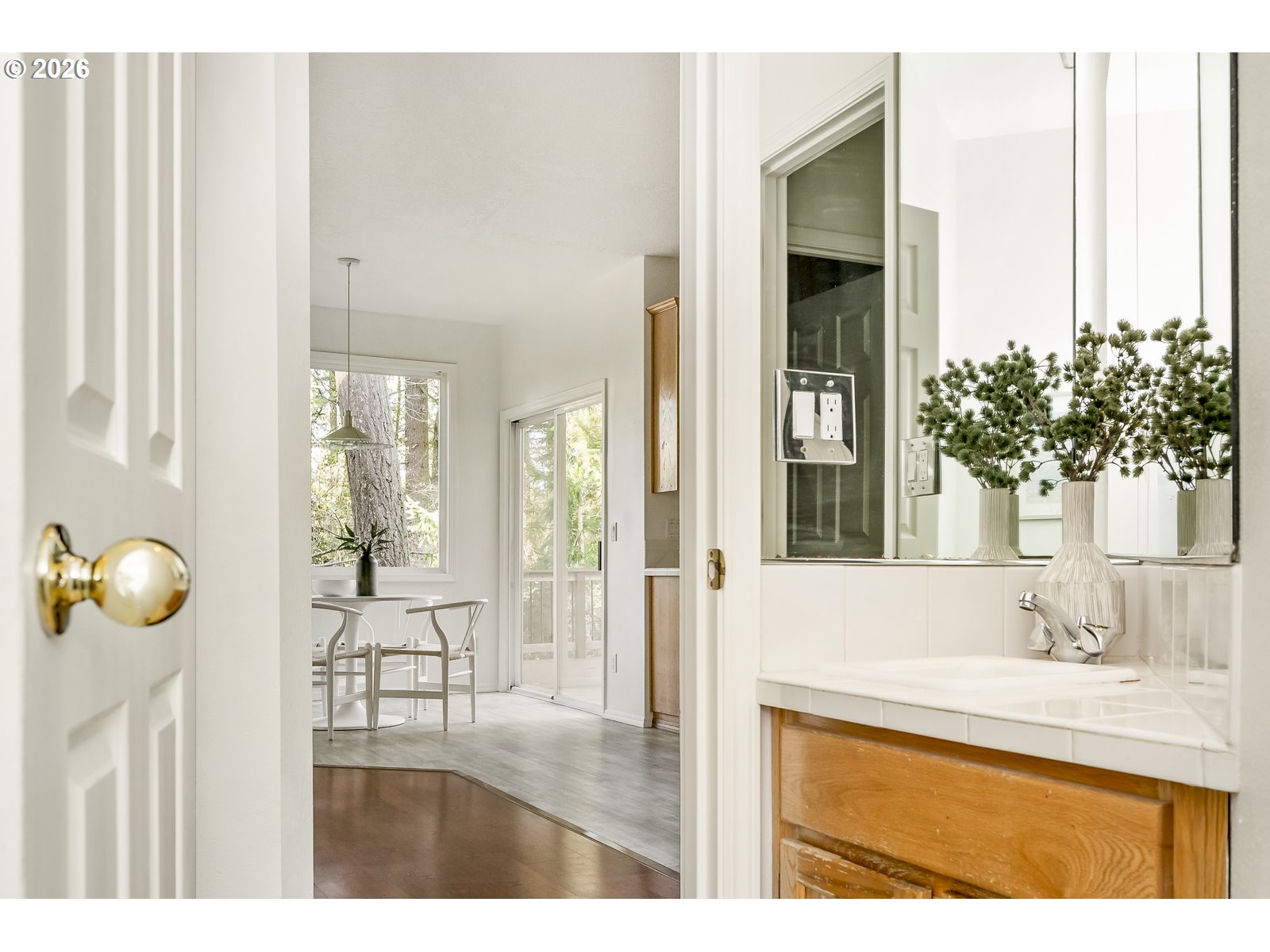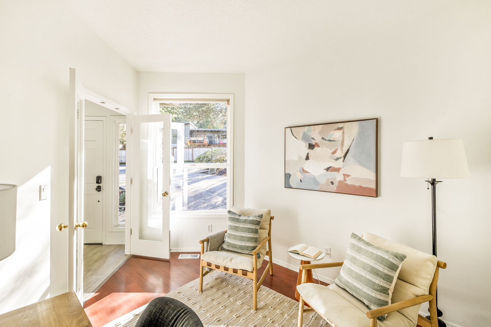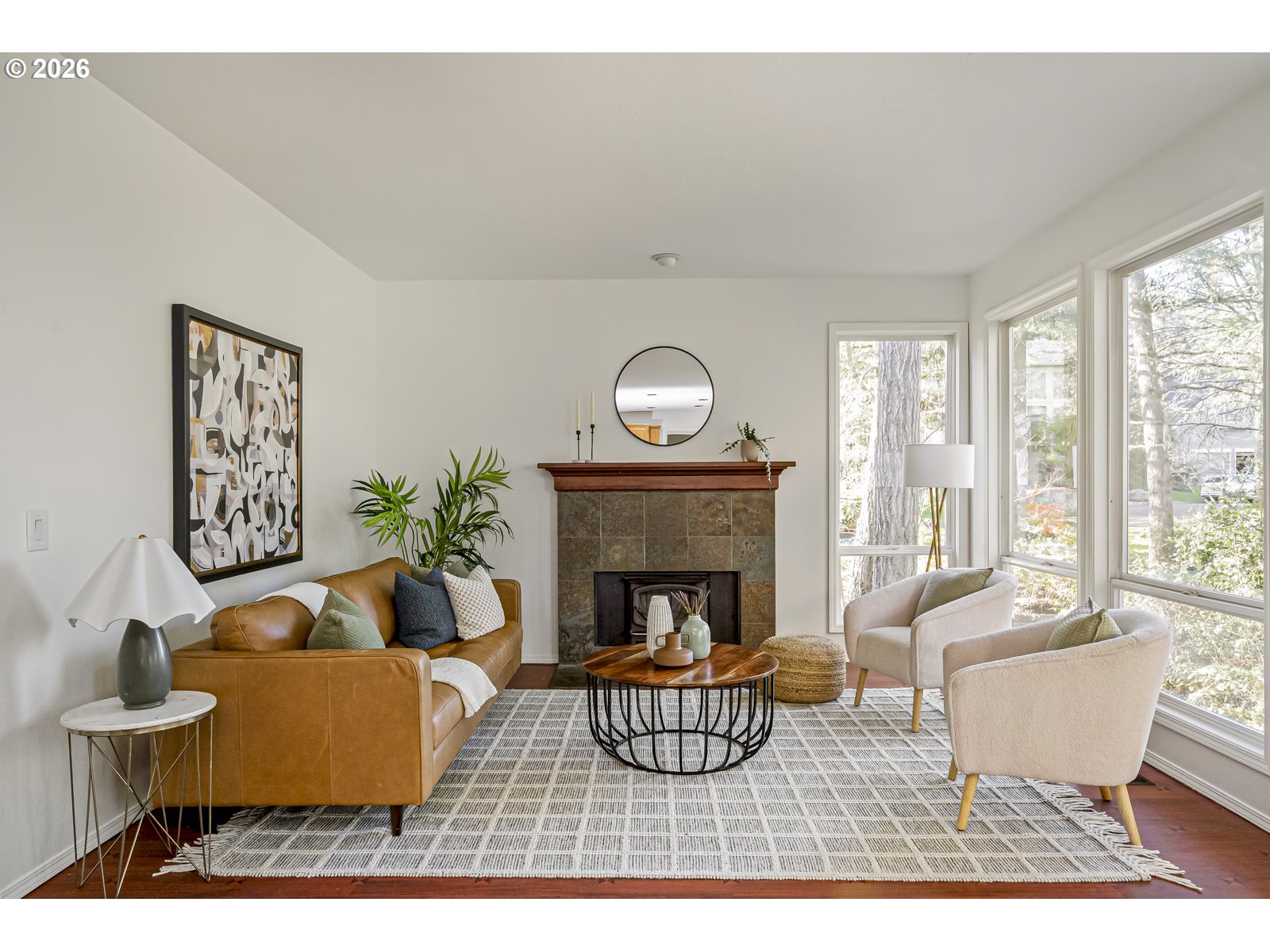 Serene living in desirable Arnold Creek! Tucked onto a quiet street with nature views, lush native plantings, and a seasonal creek flowing through the back of the property, you’ll find this stately traditional full of warmth and light.