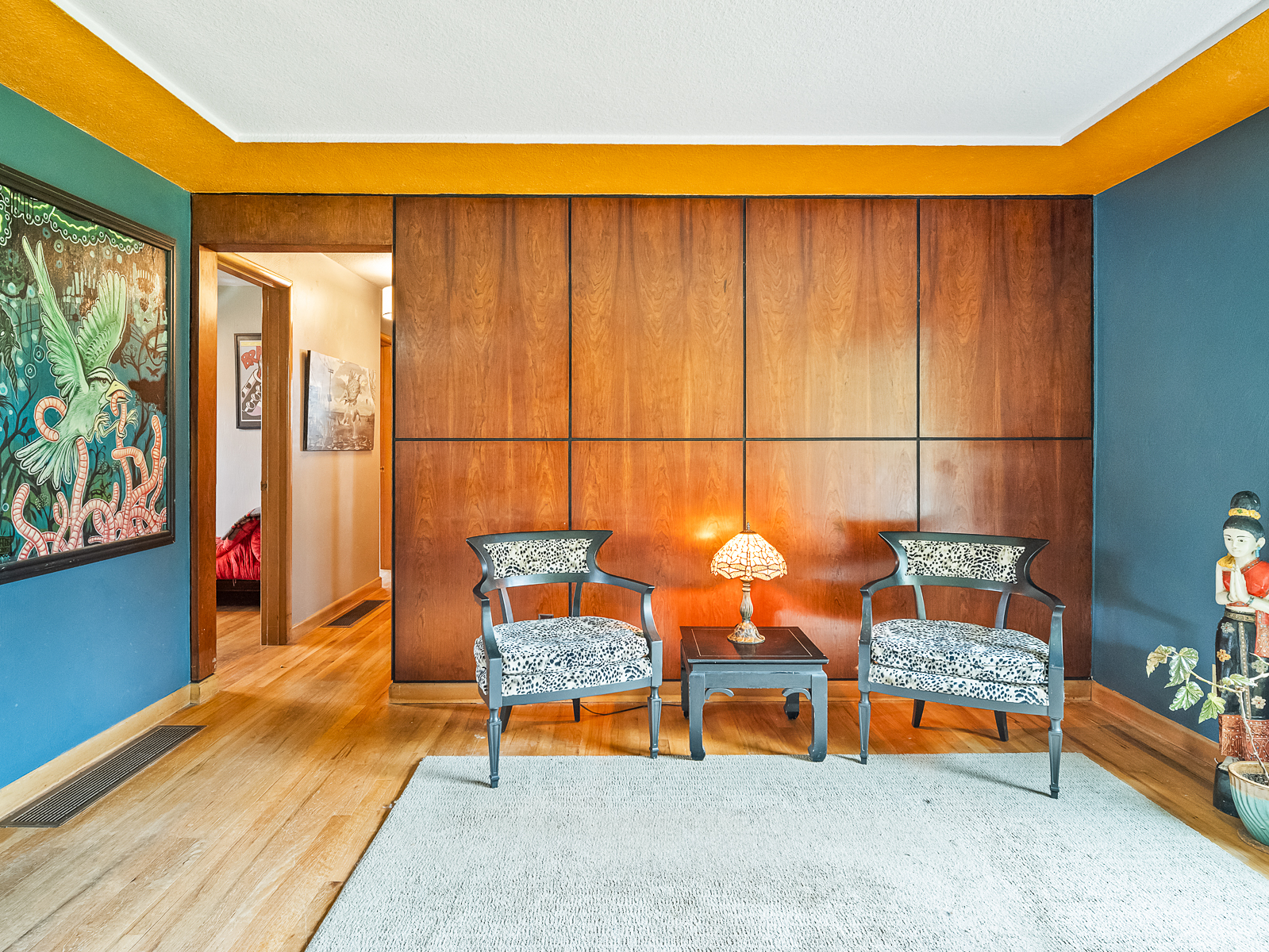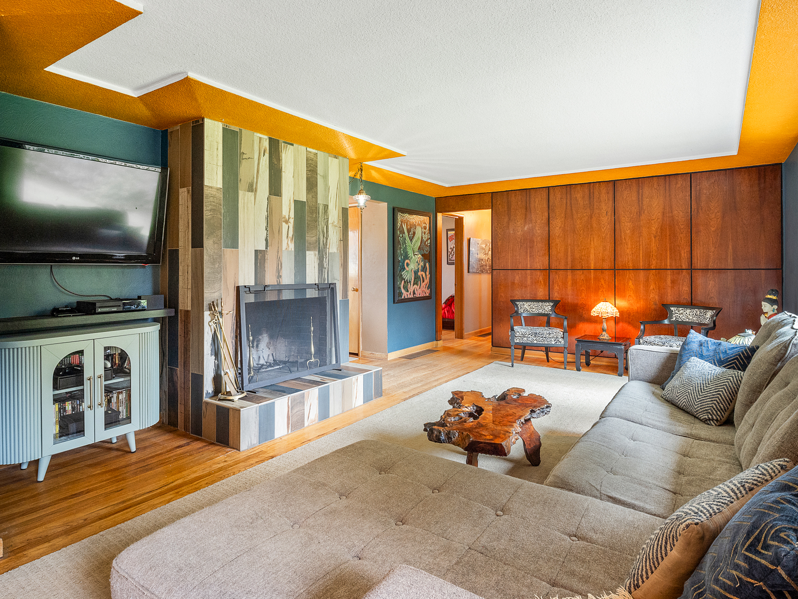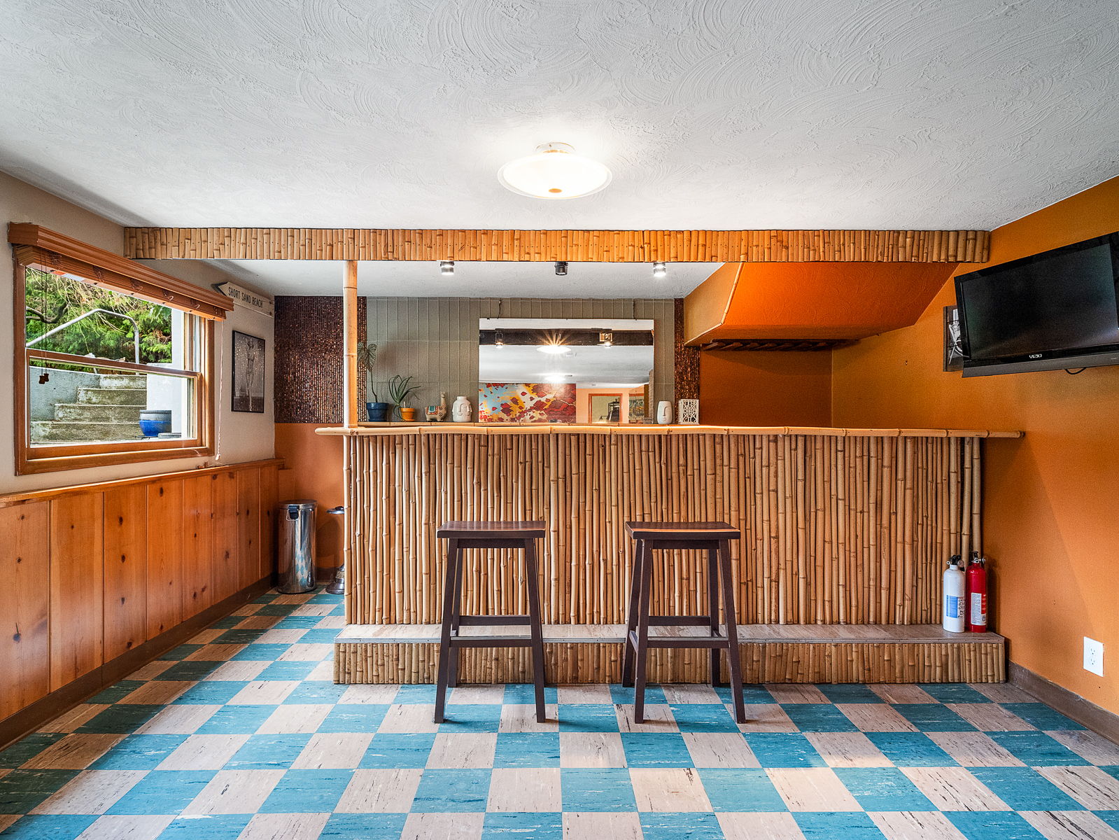 View ListingThis preserved midcentury day ranch in Parkrose Heights is full of style, with vintage mahogany paneling, original wood floors, tiled feature fireplace, and large picture windows that overlook the park-like backyard. Enjoy hosting gatherings in the spacious living room, or take the party downstairs to the chic family room with original brick fireplace and swanky tiki bar.