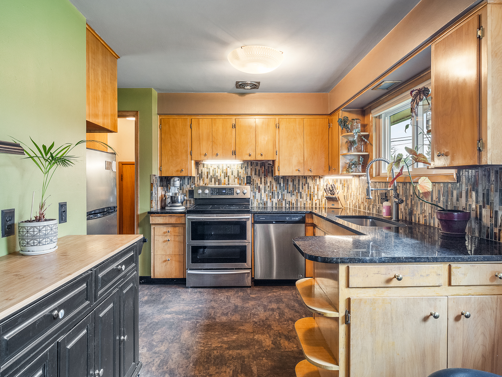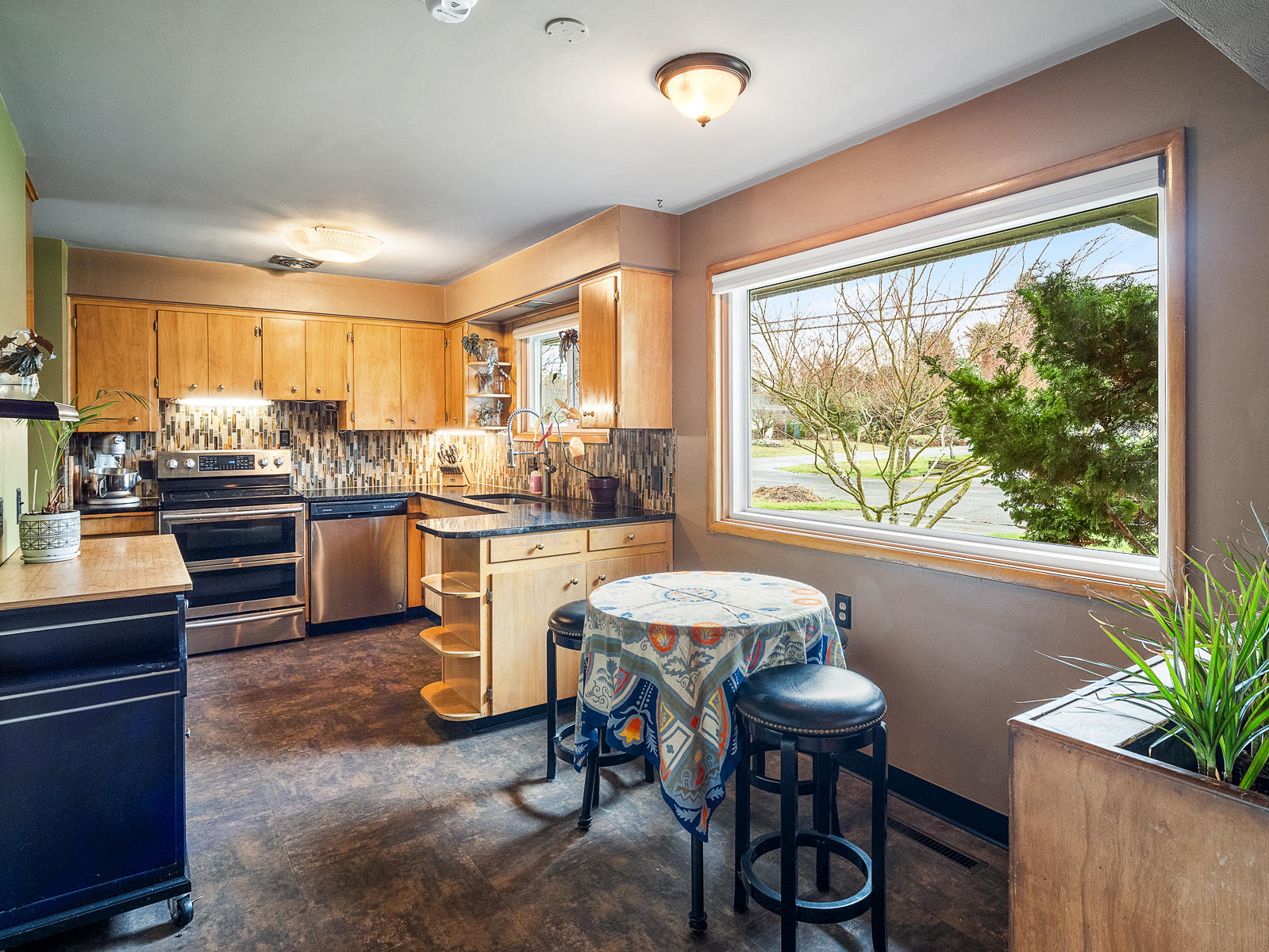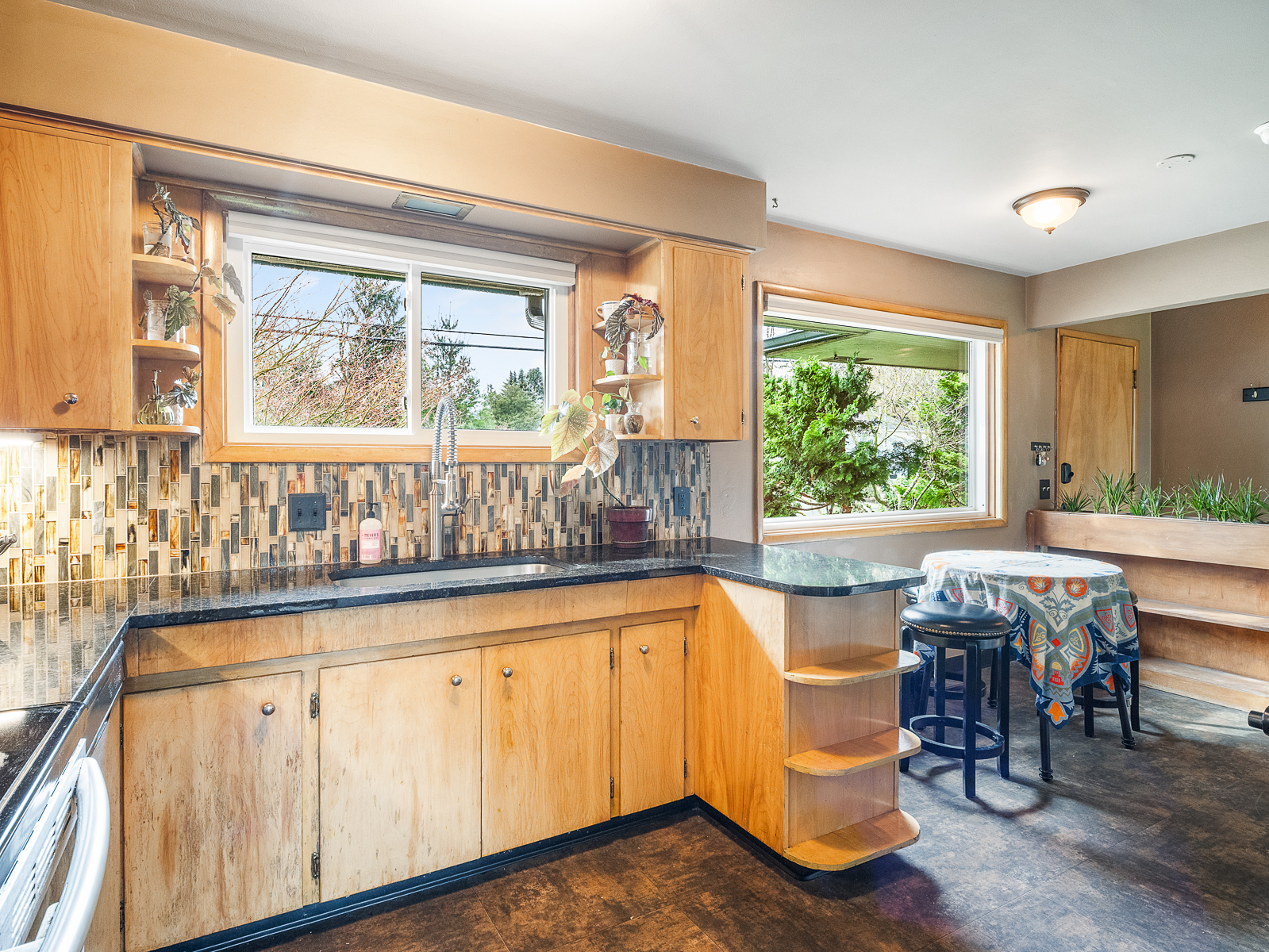 View ListingThis preserved midcentury day ranch in Parkrose Heights is full of style, with vintage mahogany paneling, original wood floors, tiled feature fireplace, and large picture windows that overlook the park-like backyard. Enjoy hosting gatherings in the spacious living room, or take the party downstairs to the chic family room with original brick fireplace and swanky tiki bar.