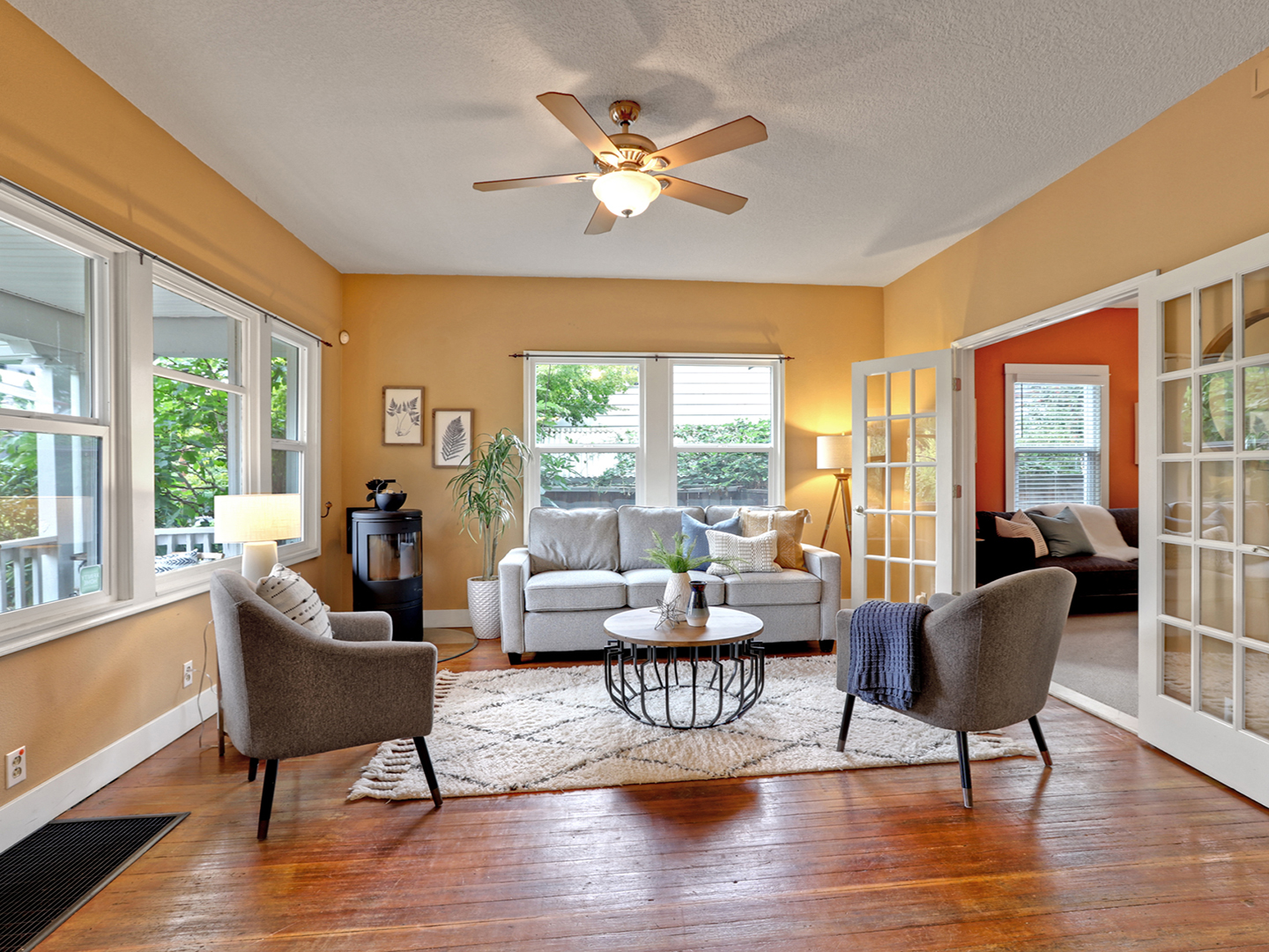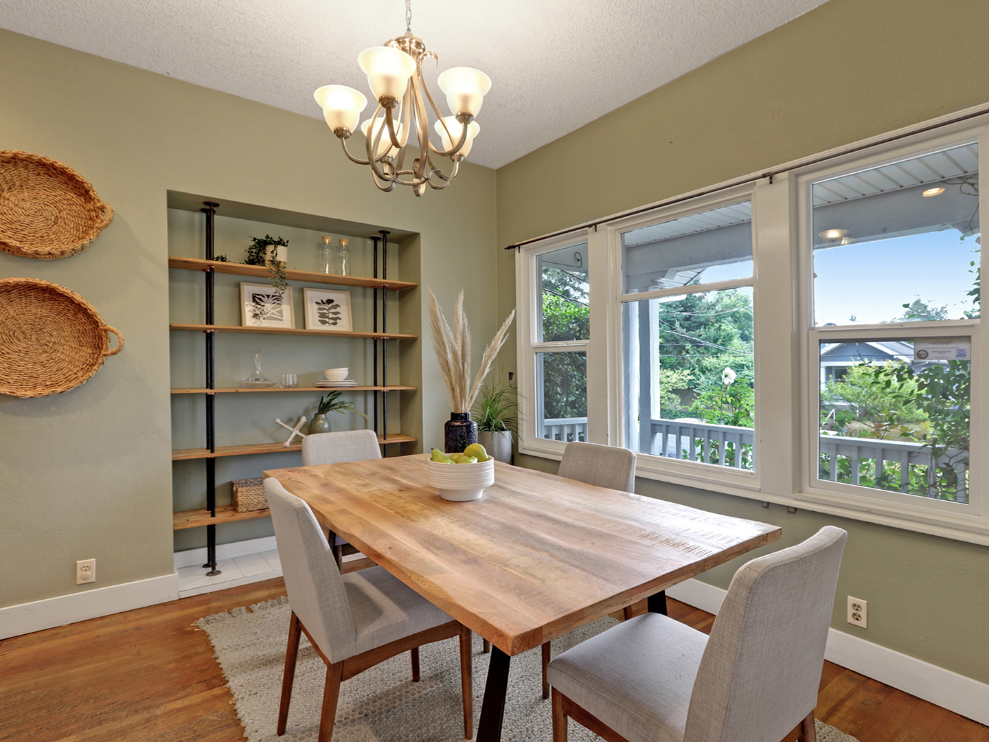 View ListingBeautiful Overlook Bungalow. Covered front porch, brick patio and spacious yard w/natives, trees & garden beds. Open plan layout features family room, dining room & kitchen w/breakfast bar. Upstairs; 3 bedrooms & tiled 2nd bathroom. Bungalow charm; wood floors, french doors, Morso woodstove and basement w/wine cellar & passage to tuck-under garage. Updates include windows, electrical, plumbing… blocks from cafes, dining, grocery, transit, park.
