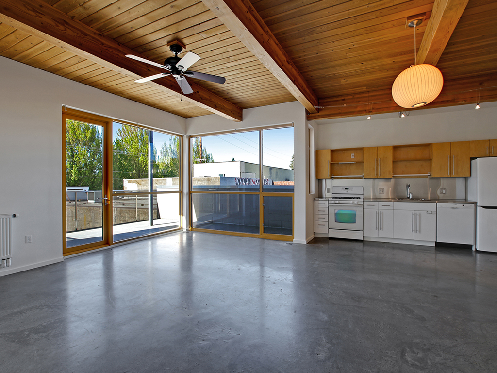Belmont Lofts – Super special Southwest Corner Unit. Open spaces, 11′ ceilings, beautiful finishes. Oversized wrap-around deck (180 sf) peers into the neighborhood on the quiet side of the building. Built in 2005 by Holst Architecture, now an established neighborhood gem, The Belmont Lofts is a gorgeous building featuring walls of windows, wood trimmed ceilings, concrete floors, modern finishes and efficient radiant heat. 2nd floor, 1 bedroom unit includes deeded parking and ample storage. Home in the heart of the Hawthorne/Belmont high streets; restaurants, cafes, amenities & parks.