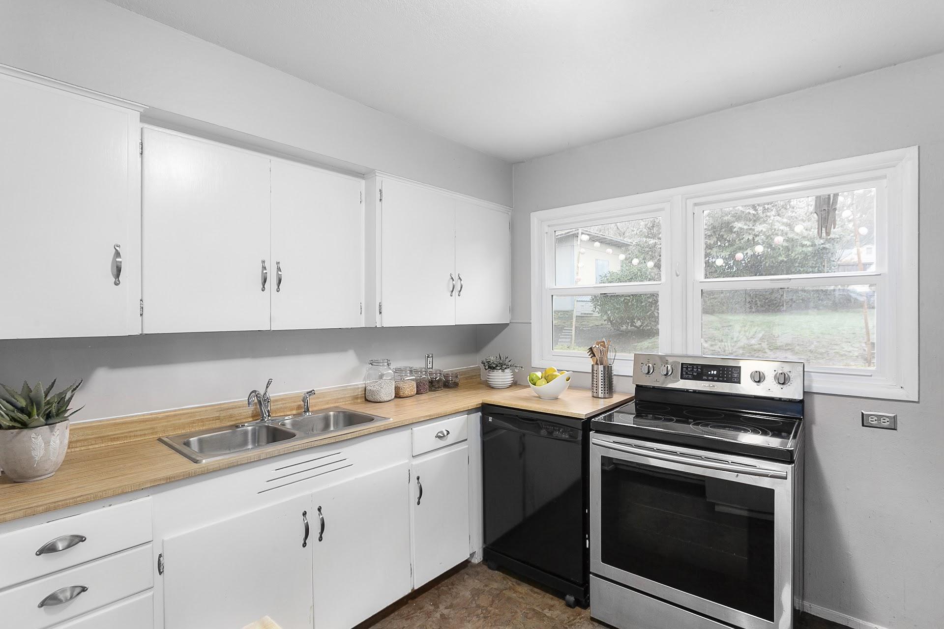 Cheerful Cedar Hills ranch with big windows and great outdoor living. Solid home ready for personal touches. Bright living spaces with new double pane windows. Open U-shaped kitchen with updated appliances. Walk out to the large multi-layered, fully fenced backyard with patio, newer deck, and brick steps. Newer hot water heater and roof. Just down the road from Cedar Hills Parks and plenty of shops.
