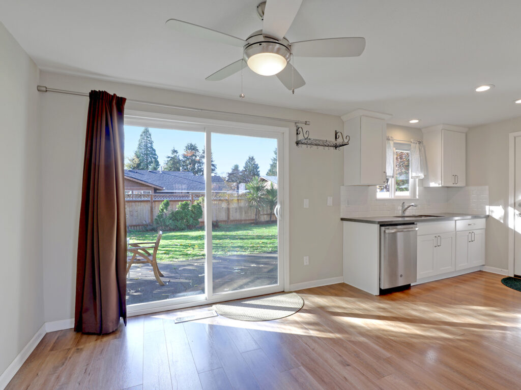View ListingCentral Milwaukie 4 bedroom. Beautifully renovated one-level set on a quiet cul de sac. Modern kitchen; newer cabinets, solid countertops, tile work, stainless appliances. Dining room with patio access. Two updated bathrooms, contemporary lighting, ample storage, closets and attached garage. New A/C, fully fenced yard with established beds. Minutes from the aquatic center and Three Creeks natural area.