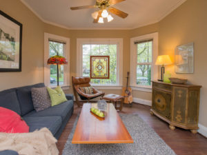 This cheerful home, in an array of happy colors, will make it easy for you to count those rainbows in your life. Open living spaces with generous sized rooms, solid craftsmanship, plus an updated kitchen & bath equal piece of mind. Quaint upstairs loft space allows you to shut off the happenings on the main floor. Use it as an office, sleep-over room or den. Its flex space. It can be what you make it. Enjoy the covered back porch for morning coffee and the sound of birds. Recent updates include: Kitchen counters, cork flooring, tile, lighting, farm house sink + energy star water heater.