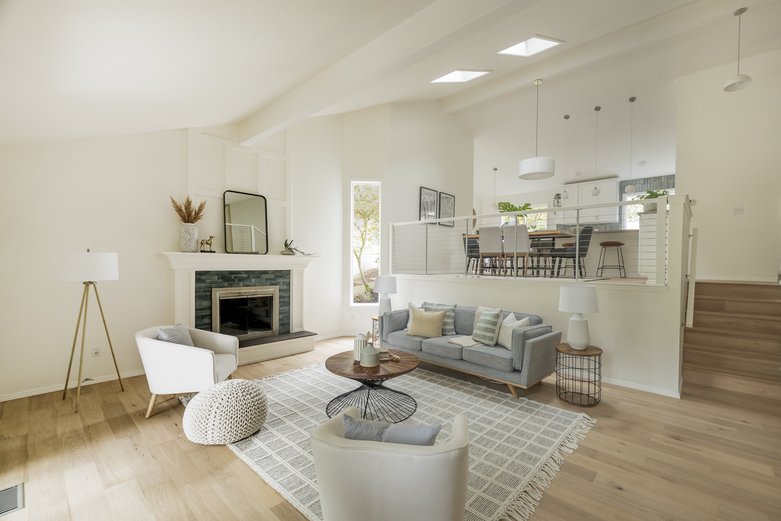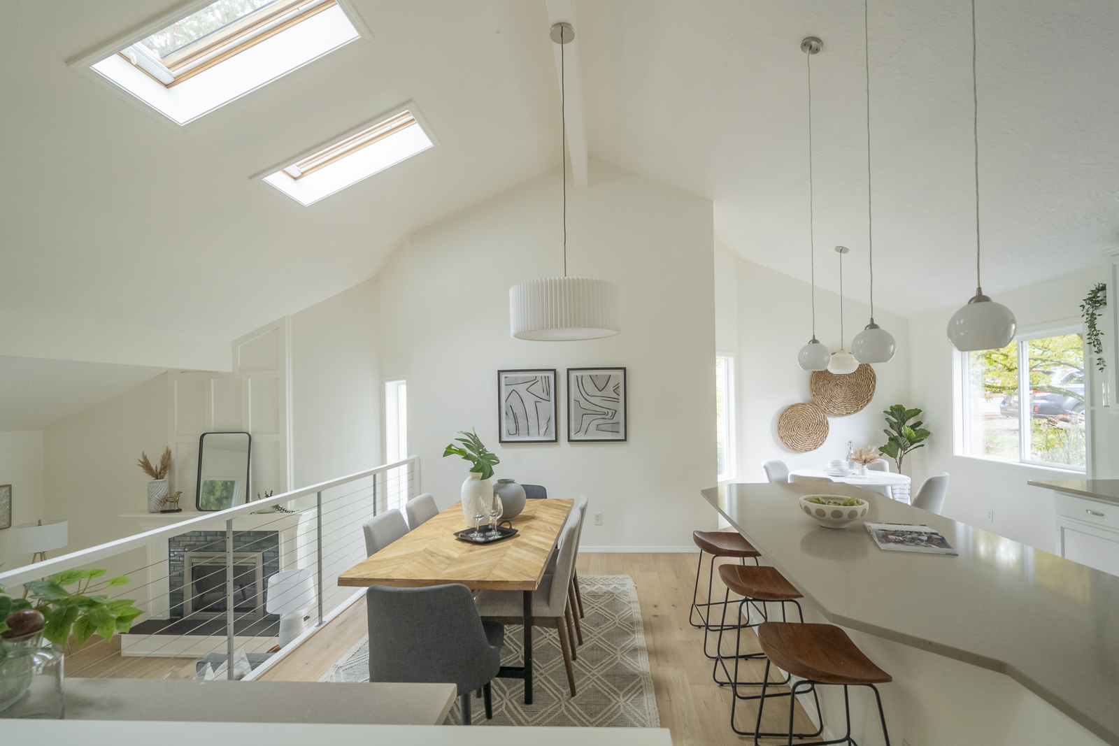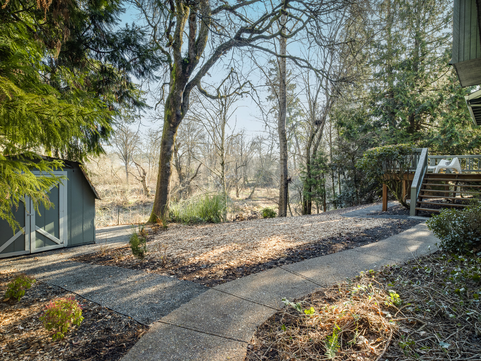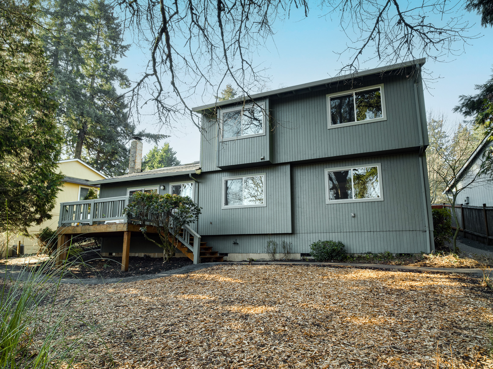 Desirable updated contemporary retreat on Fanno Creek! Live like you’re on vacation every day of the year with peaceful water views from the deck and out every back window. This property features soaring vaulted ceilings, unique architectural details, an updated kitchen with brand new appliance package and designer tile, and an open-concept great room with skylights and stunning fireplace.