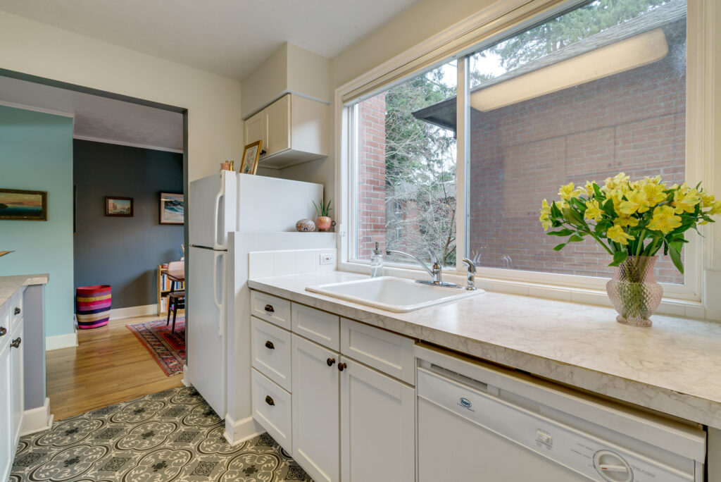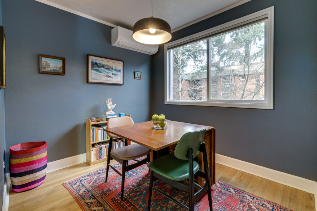 Large double-pane windows let in plenty of natural light throughout the unit and a recently installed mini-split is the perfect enhancement to the heating and cooling for this sweet sanctuary.