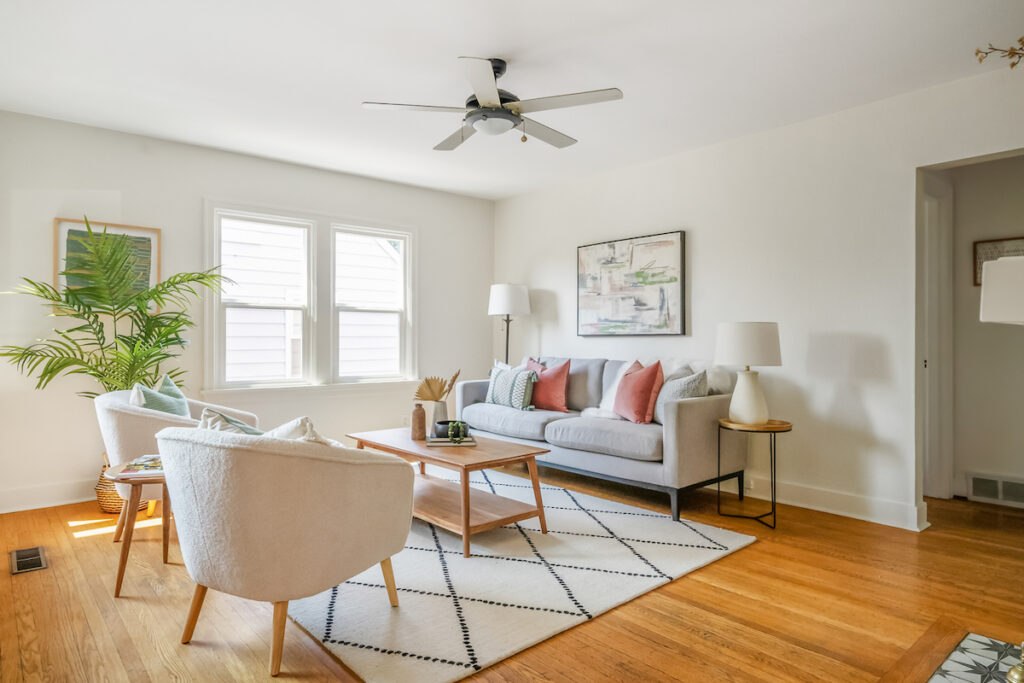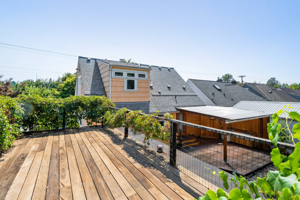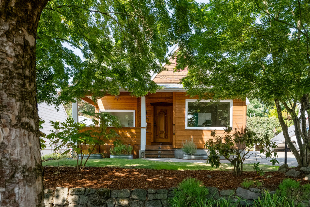 Everything you need in your new home is here! Step into this light-filled dreamboat with hardwood floors, formal living room with fireplace, spacious dining room with picture window, and remodeled kitchen and bathrooms. Plus, heated floors in the kitchen and main floor full bath. The main level boasts two bedrooms, and one and a half baths. Head upstairs to the primary suite featuring a large walk in closet and full bath with clawfoot tub. Clean open basement with extra ceiling height and side entrance offers great bonus space and ADU potential. In the heat of the summer or the cool of the winter, enjoy your covered front porch for stargazing or remote working outdoors! Garden out back, tinker in your detached garage, or entertain friends and family under your covered porch or rooftop patio – all with the makings for an outdoor kitchen. With a 93 Walk Score and 94 Bike Score, get around the city with ease!