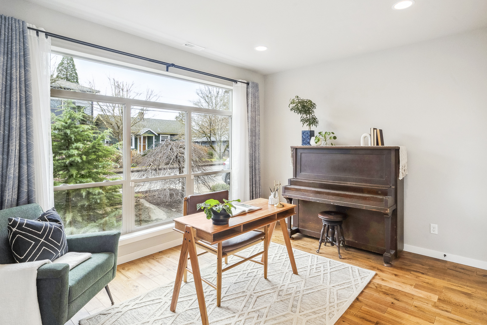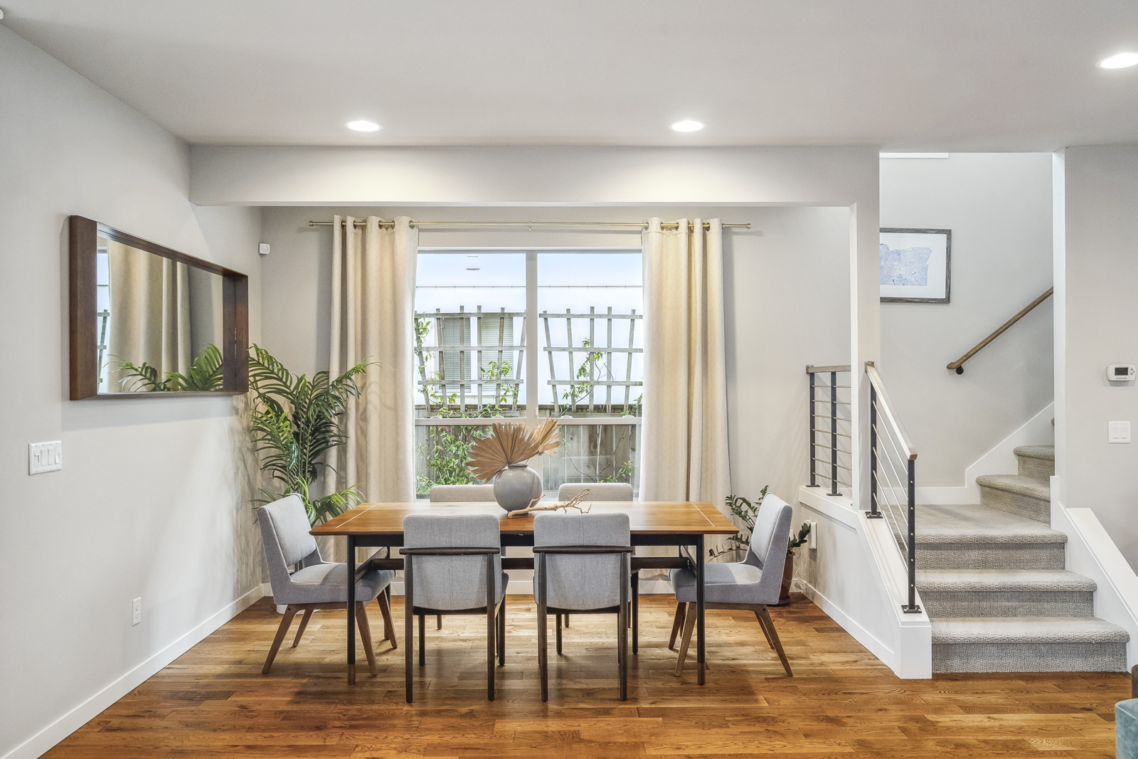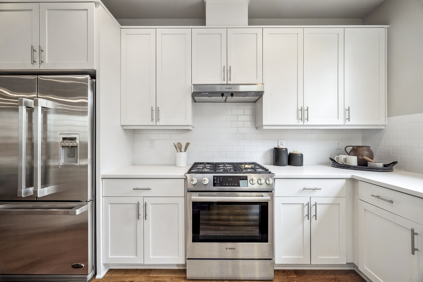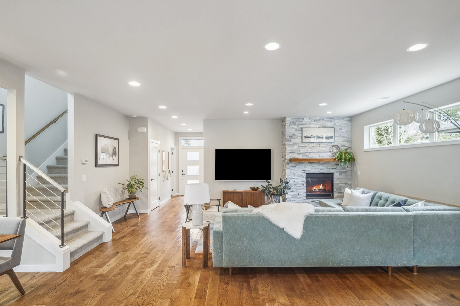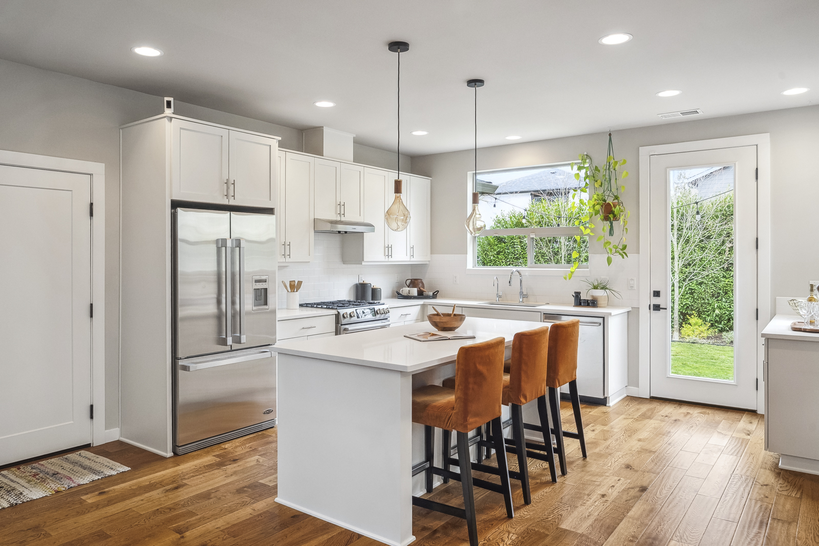 View ListingThis stylish contemporary is packed with upgrades that stand out: from the moment you enter, you will notice hand-scraped oak flooring, soaring ceilings, and excellent light from an abundance of windows. The open-concept main floor features a cook’s kitchen with coffee bar, large pantry, Bosch and Fisher Paykel appliances, in-sink water filtration system, and a comfortable island where your guests can lounge while you prep dinner. The kitchen looks onto the living space with its elegant gas fireplace, as well as the dedicated dining area. On this floor, you’ll find a large bedroom with dual closets, which could function as a fourth bedroom, home office, or music room.