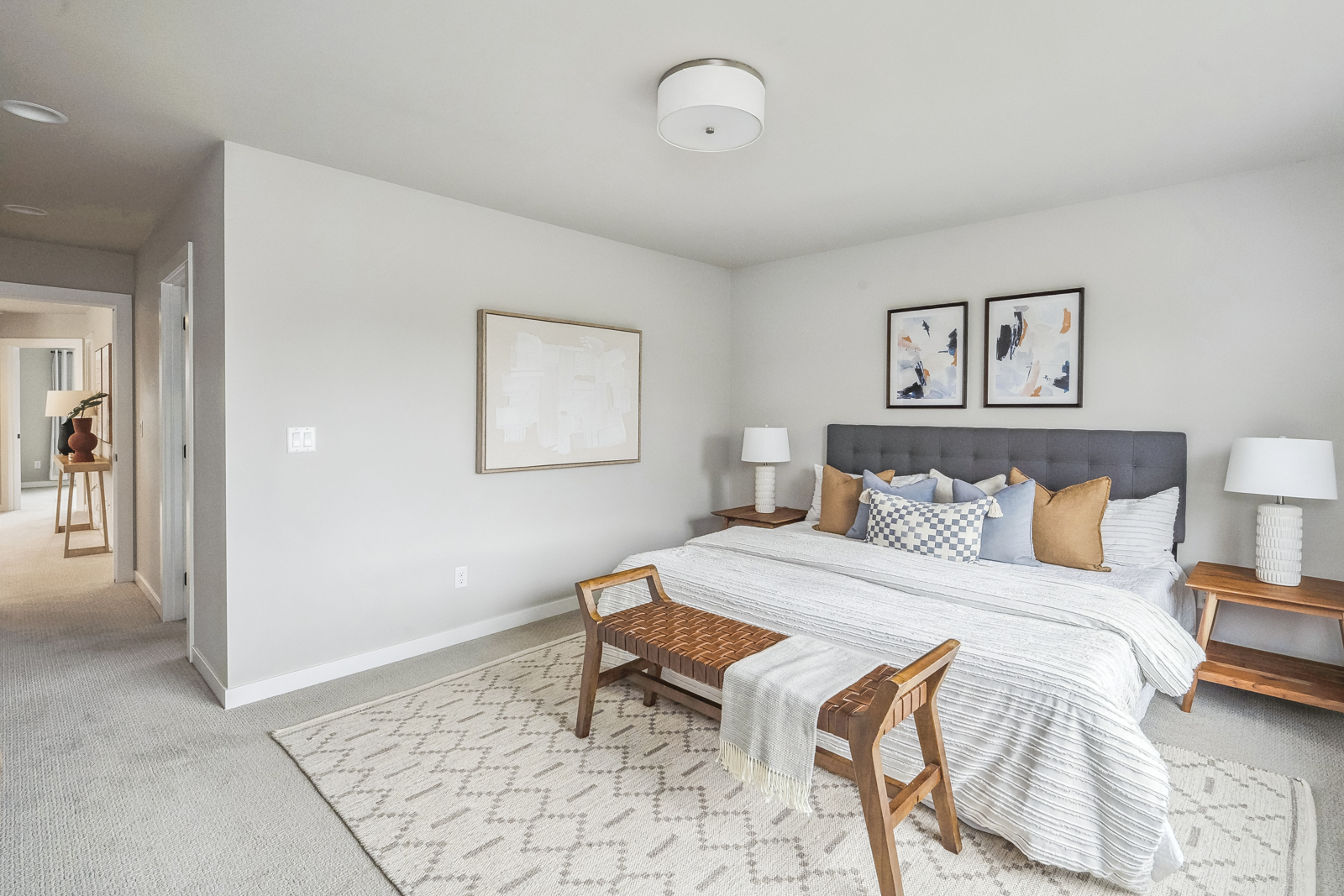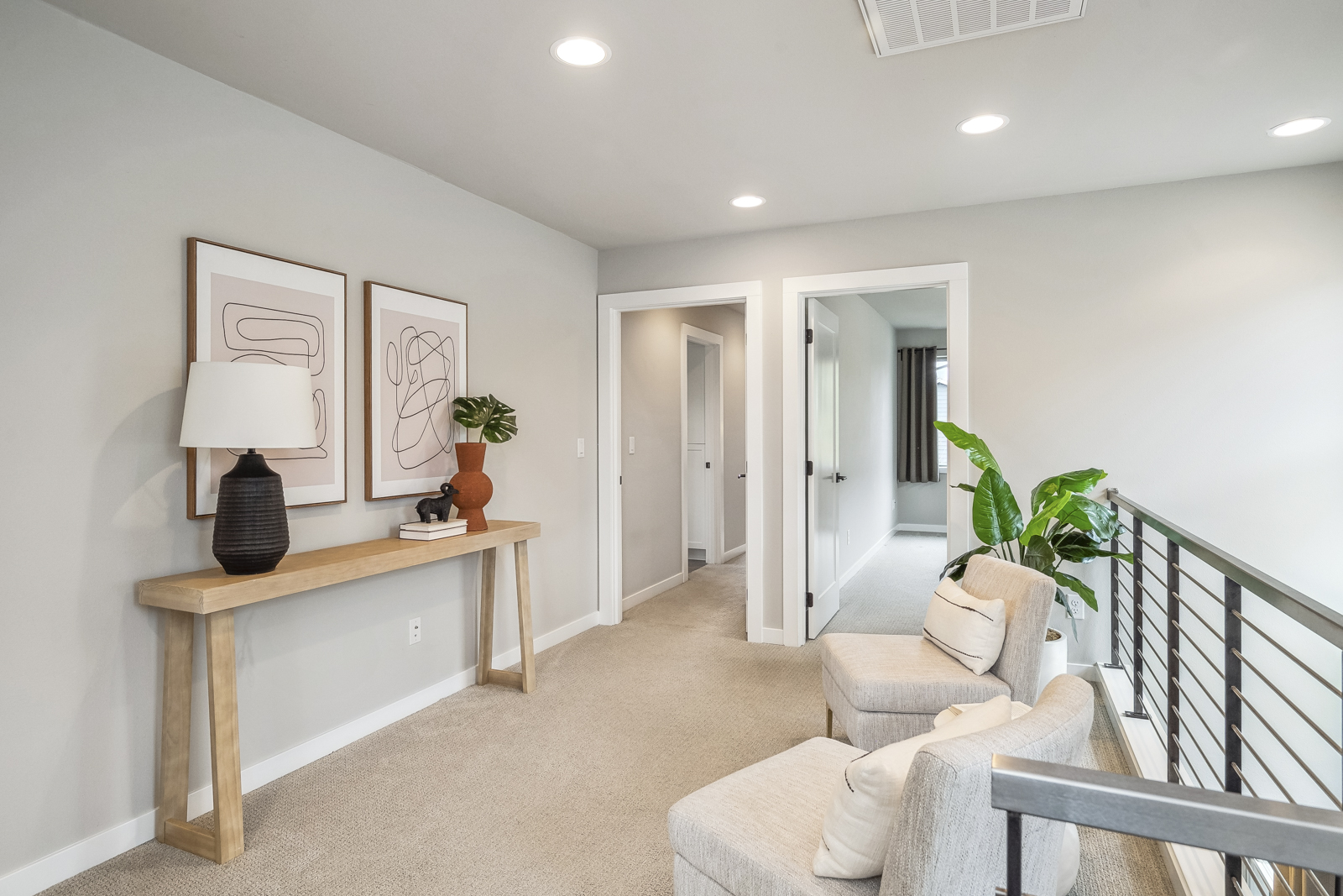 Upstairs, you’ll find three spacious bedrooms, including a primary ensuite with a walk-in closet, luxurious walk-in shower, and dual sinks. This floor offers a bonus loft area that could function as a reading nook, TV space, or an excellent place to study.
