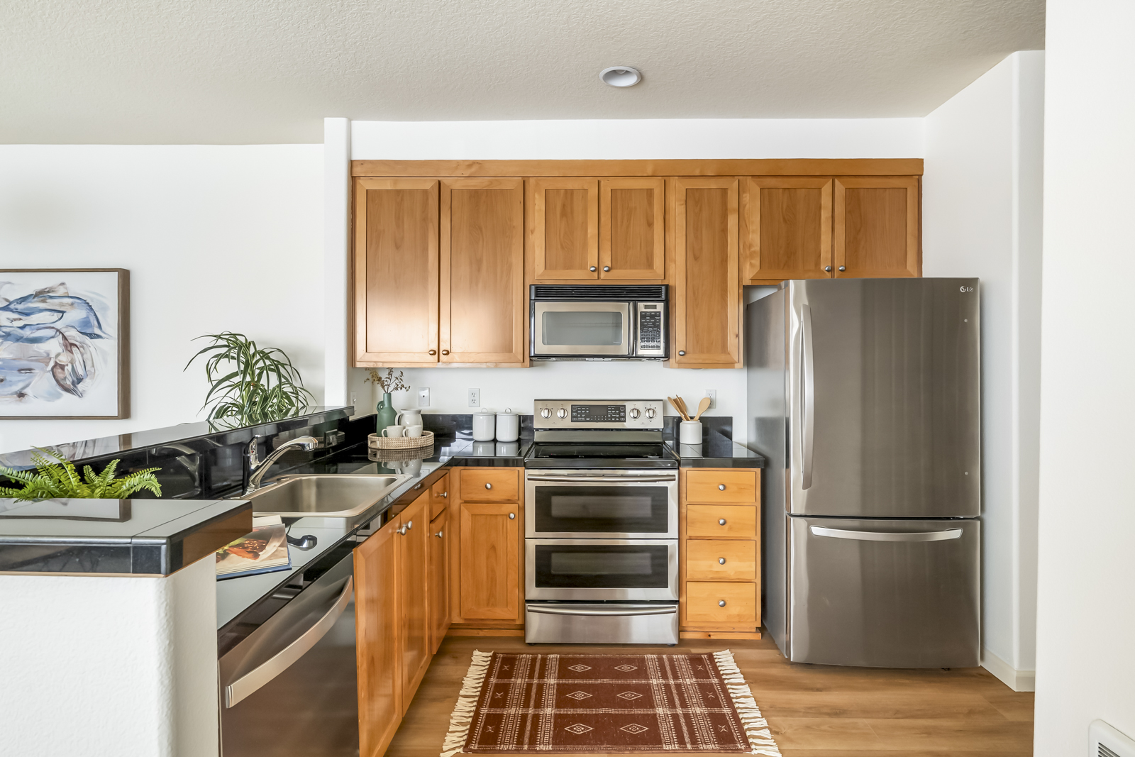 The comfortable kitchen offers plenty of space to cook and is equipped with newer stainless steel appliances. The bathroom has been tastefully updated with finishes that are both contemporary and classic. Enjoy your own private covered porch- perfect for relaxing with a morning coffee or unwinding at the end of the day. The in-unit washer/dryer, convenient assigned parking space, and desirable community location tucked into the quiet interior are all icing on the cake!