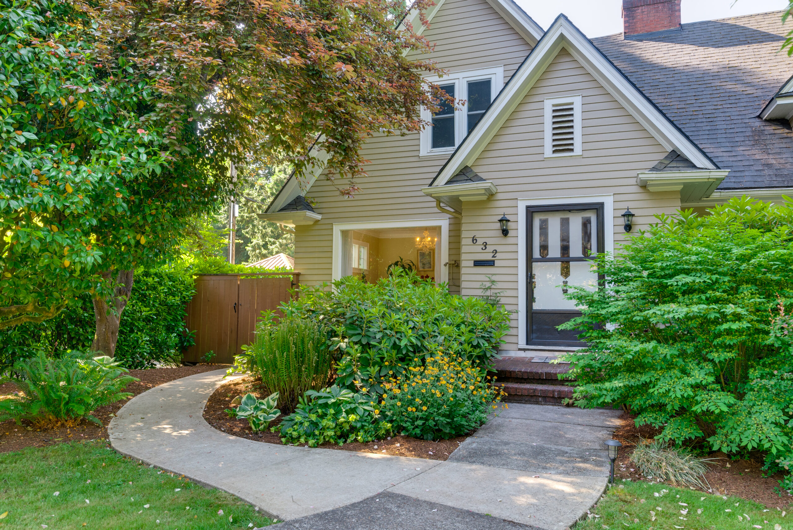 Elegant Garthwick home on large park-like lot with native and perennial plantings. Original features include wood floors, divided light windows, sunroom, fireplace with mantle & original moldings. Three Bedrooms and two baths in the main part of the home with 2 bedrooms, bath, second living room and kitchenette in the rear addition. Perfect for multi-generational living or 2nd living quarters. Attached garden room for indoor/outdoor feel and all season enjoyment. Beautiful tree-lined street!