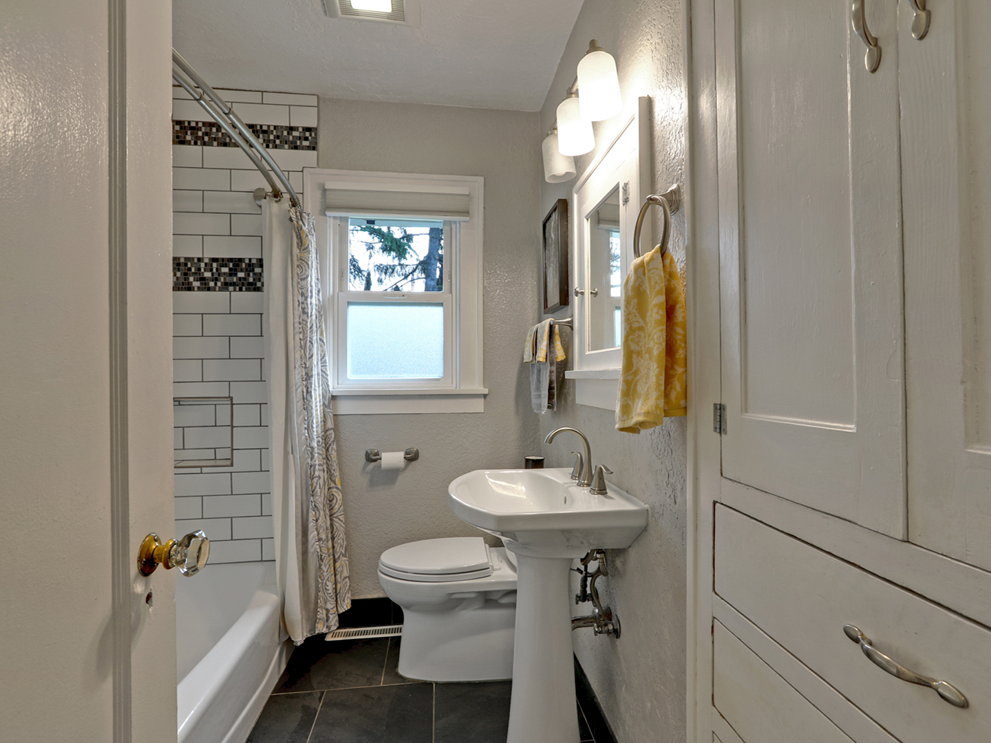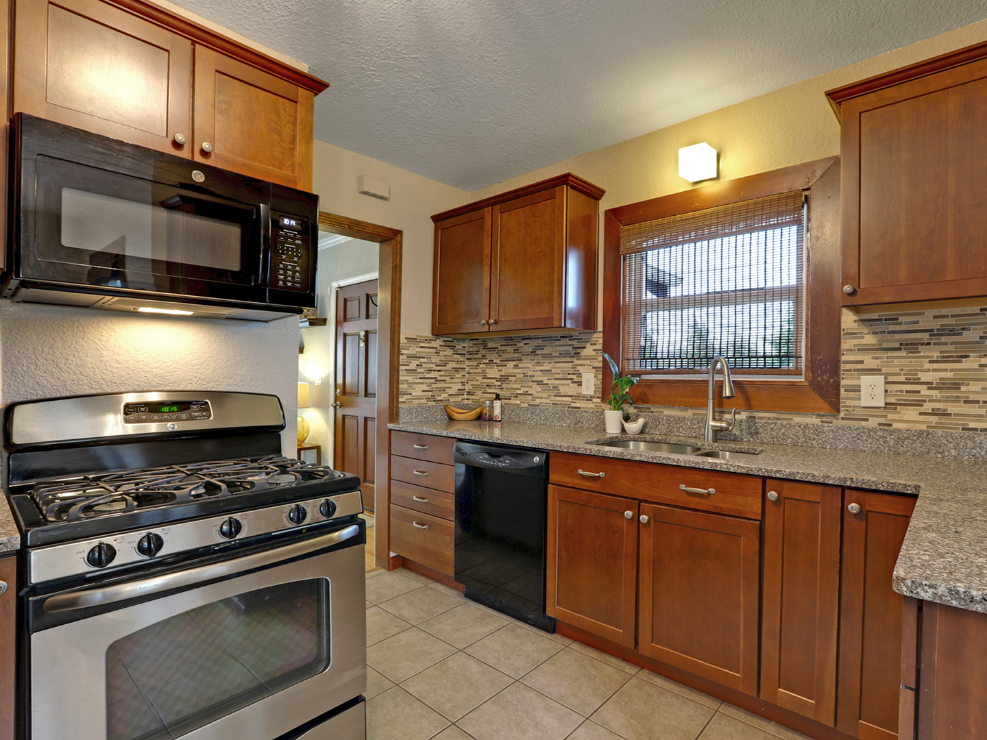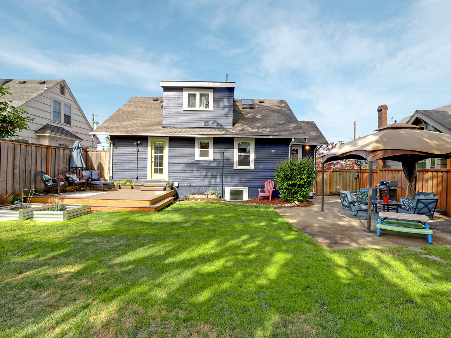 View ListingGorgeous Craftsman Bungalow, perched up from the street w/awesome yard & improvements throughout. Airy master suite w/skylights. Open concept kitchen/dining w/stone counters, stainless appliances, mud porch & backyard access. Finished basement features 3rd bath, 4th bed, storage & family rooms. Bungalow charm & modern updates on every floor; hardwoods, fireplace, woodwork, tile. Private, fenced yard w/party deck & patio, open lawn for games, gardens & beds all around. Blocks from Peninsula Park.