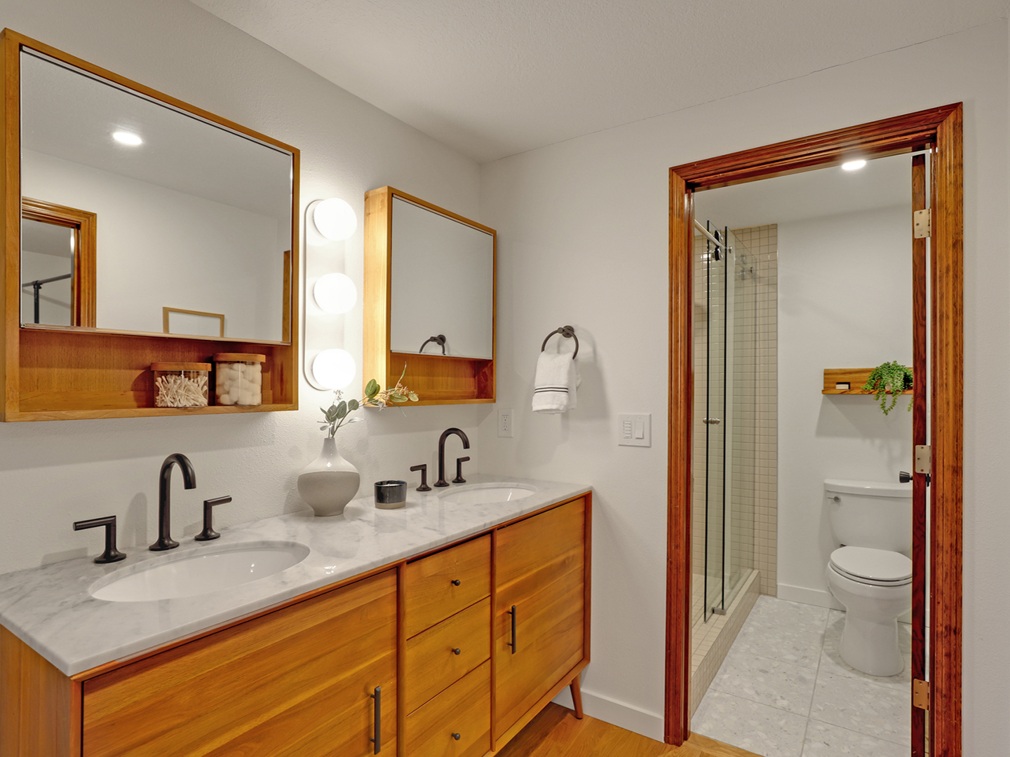 View ListingGorgeous Milwaukie 4 bedroom set on nearly a 1/2 acre lot. Custom stunner of a home, with modern renovations throughout; chef’s kitchen, open family room w/outdoor living, sunken living room w/fireplace, exceptional master suite transformation. New hardwoods, appliances, Ann Sacks Terrazzo, mod lighting. Double garage, shop & studio outbuildings. Covered backyard dining, garden beds & established natives. Beautiful retreat-like setting, near central Milwaukie amenities.