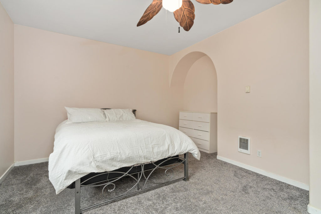 As you make your way upstairs, you will notice the updated black matte balustrade and brand new carpet. Off of the first bedroom sits a balcony sheltered by trees which creates a great ambience for taking in your morning coffee or a good book. Down the adjacent hallway lies a master suite, third gracious bedroom, second full bathroom and laundry closet.