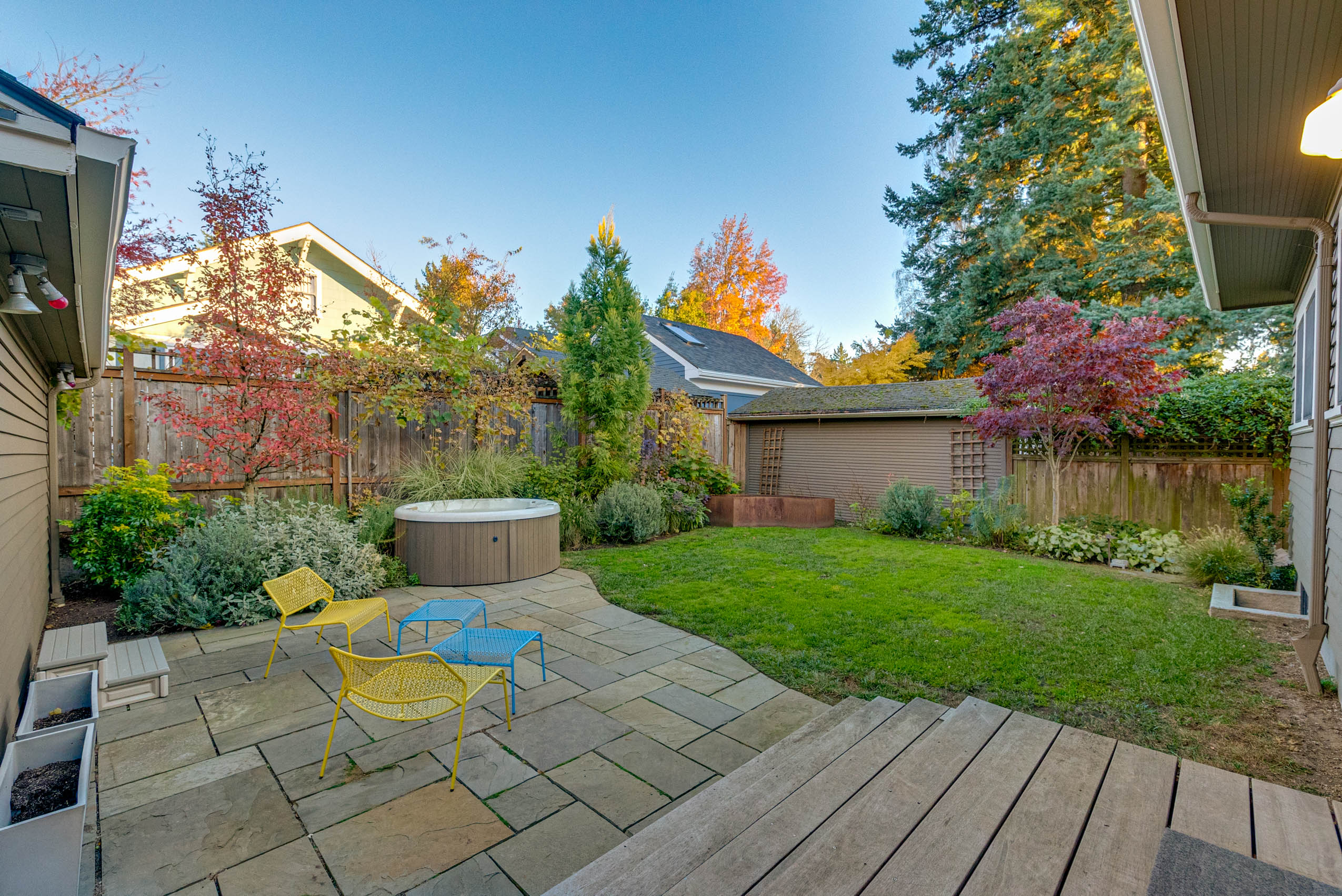 Sitting up from the street, this home is a perfect balance of classic details and modern living: period-built ins, hardwood floors, wood-burning fireplace, goes with an easy, open flow between kitchen/dining/living and family room with high end appliances and fixtures. Upstairs you will find 3 bedrooms, including a zen like master suite complete with gas fireplace, skylights and two walk-in closets. The remodeled bath is spacious and design forward with custom cabinetry and modern fixtures. The finished downstairs is a perfect daylight retreat with a family room, bedroom, and full bath. At the end of the day, make a beverage at the wet bar and step off the back deck into a professionally landscaped yard with a hot tub. Or relax on your broad front porch in this peaceful hood just minutes from some of Portland’s hippest spots.