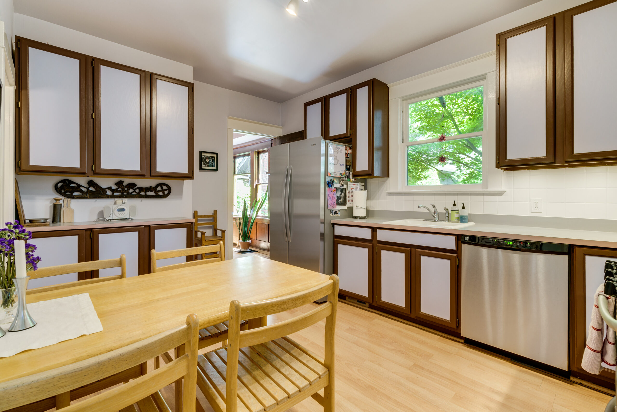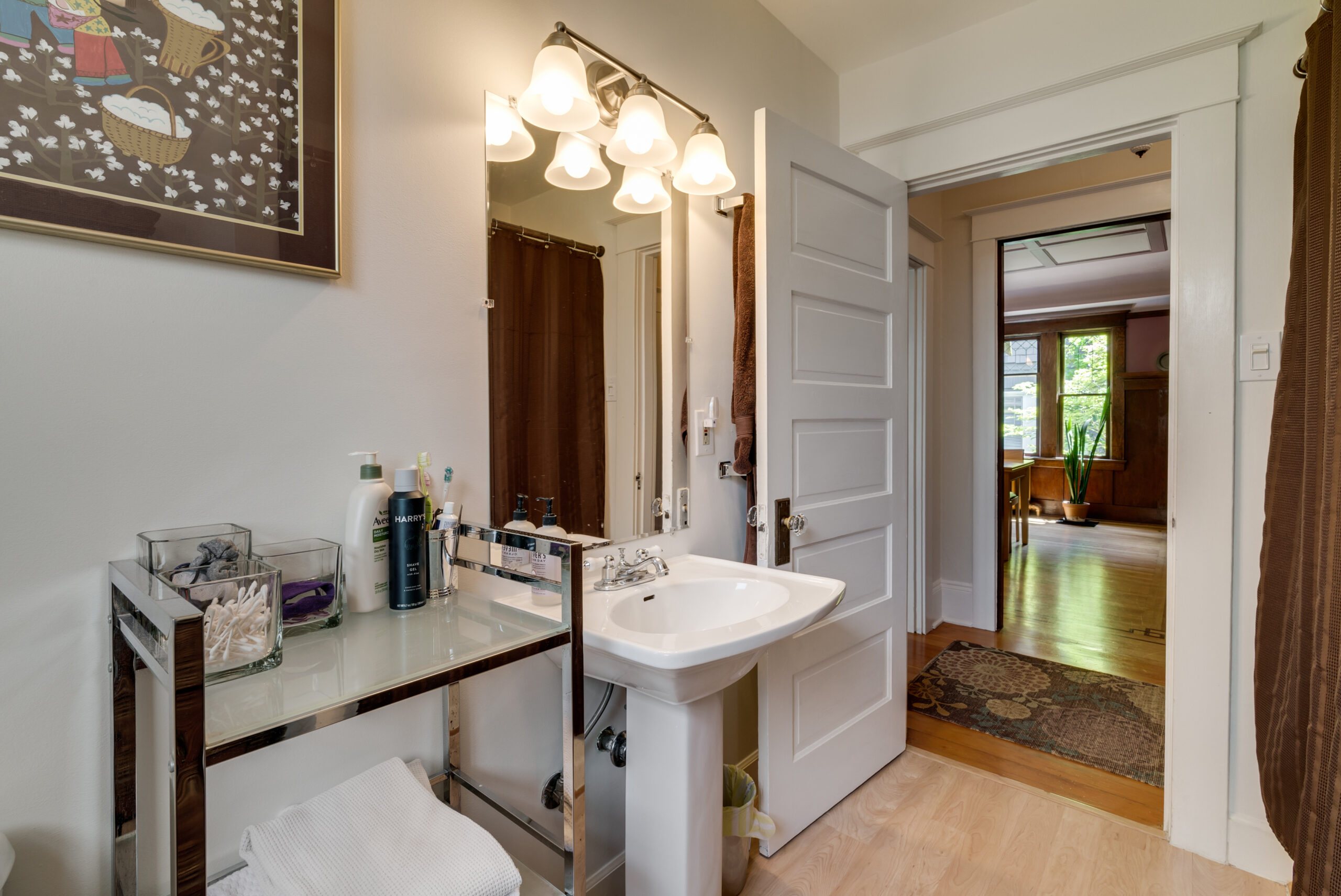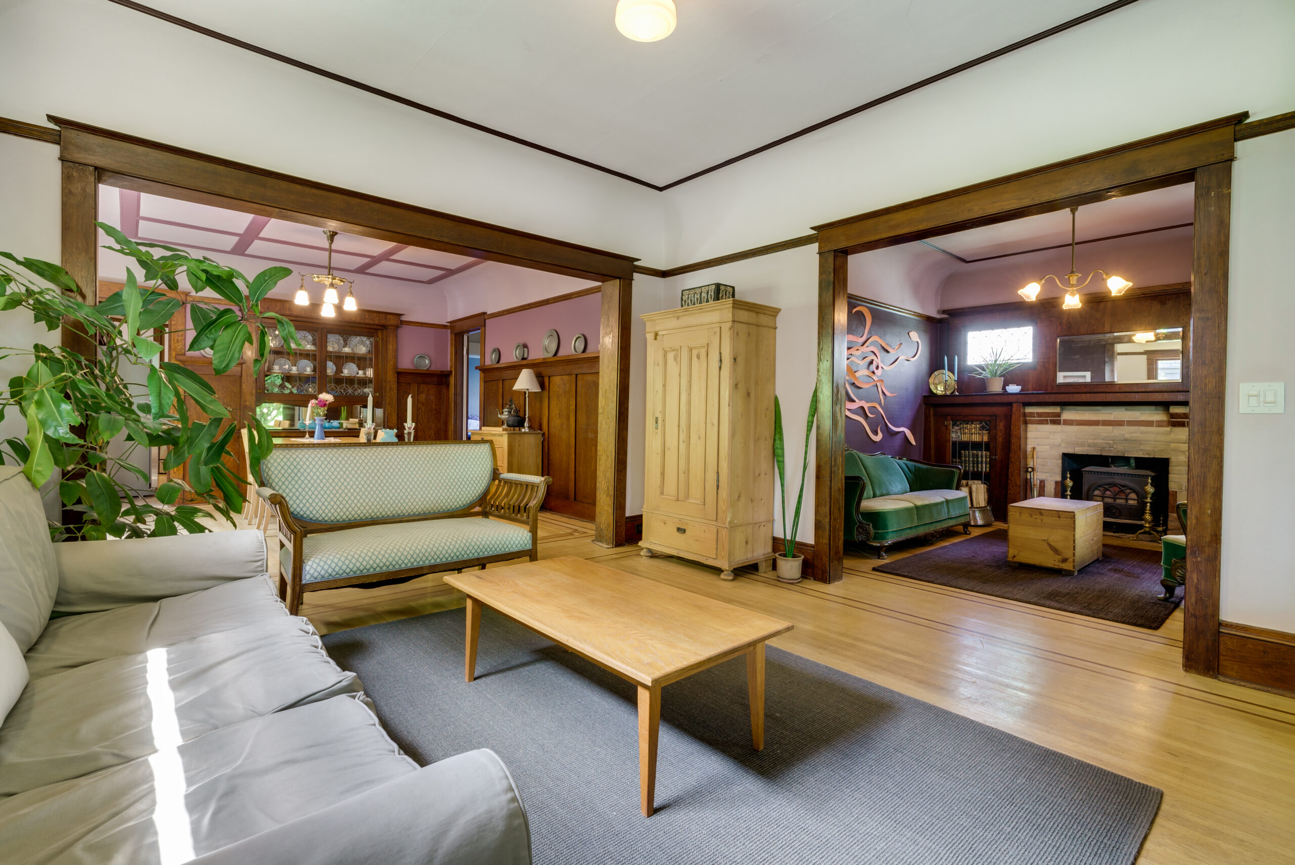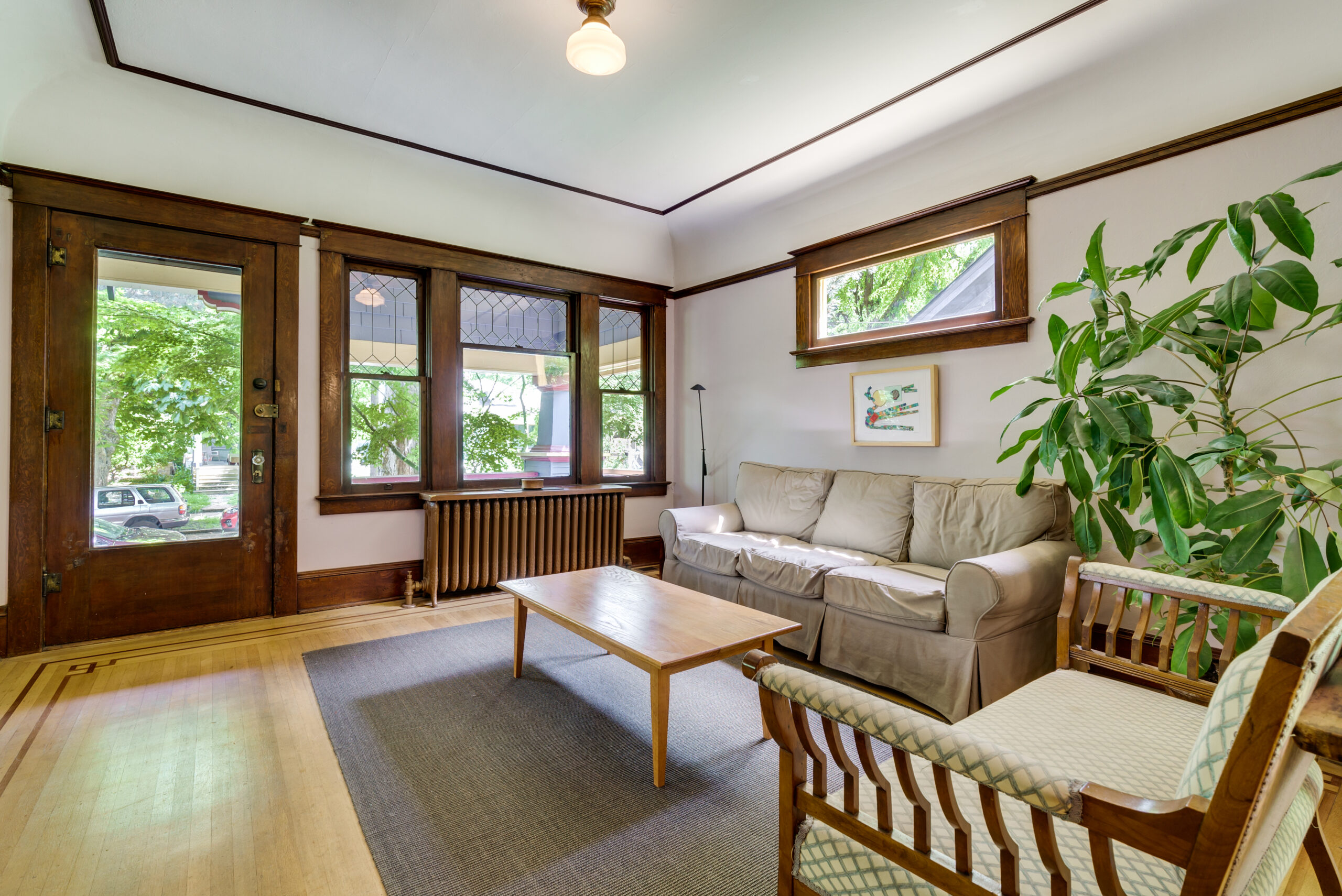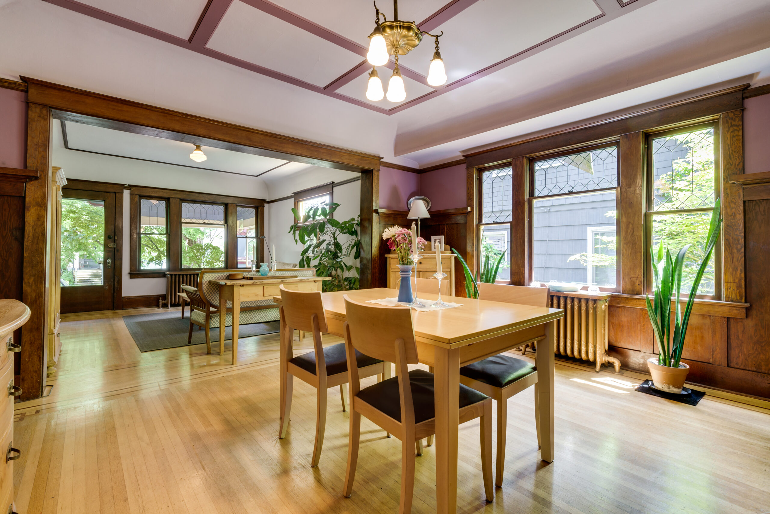 Rich in architectural detailing, this vintage craftsman home is a stunner! Featuring a stately front porch, iconic woodwork and builtins, leaded glass windows, wainscoting and formal parlor with fireplace. Covered back deck overlooks lush private backyard. Spacious primary bedroom and half bath with plumbing in place for bath/shower. Room to build equity! Basement is framed/wired/plumbed for a 4th bed, fam room and 3rd bath. Heart of Hawthorne, near shops, grocery, food and coffee!