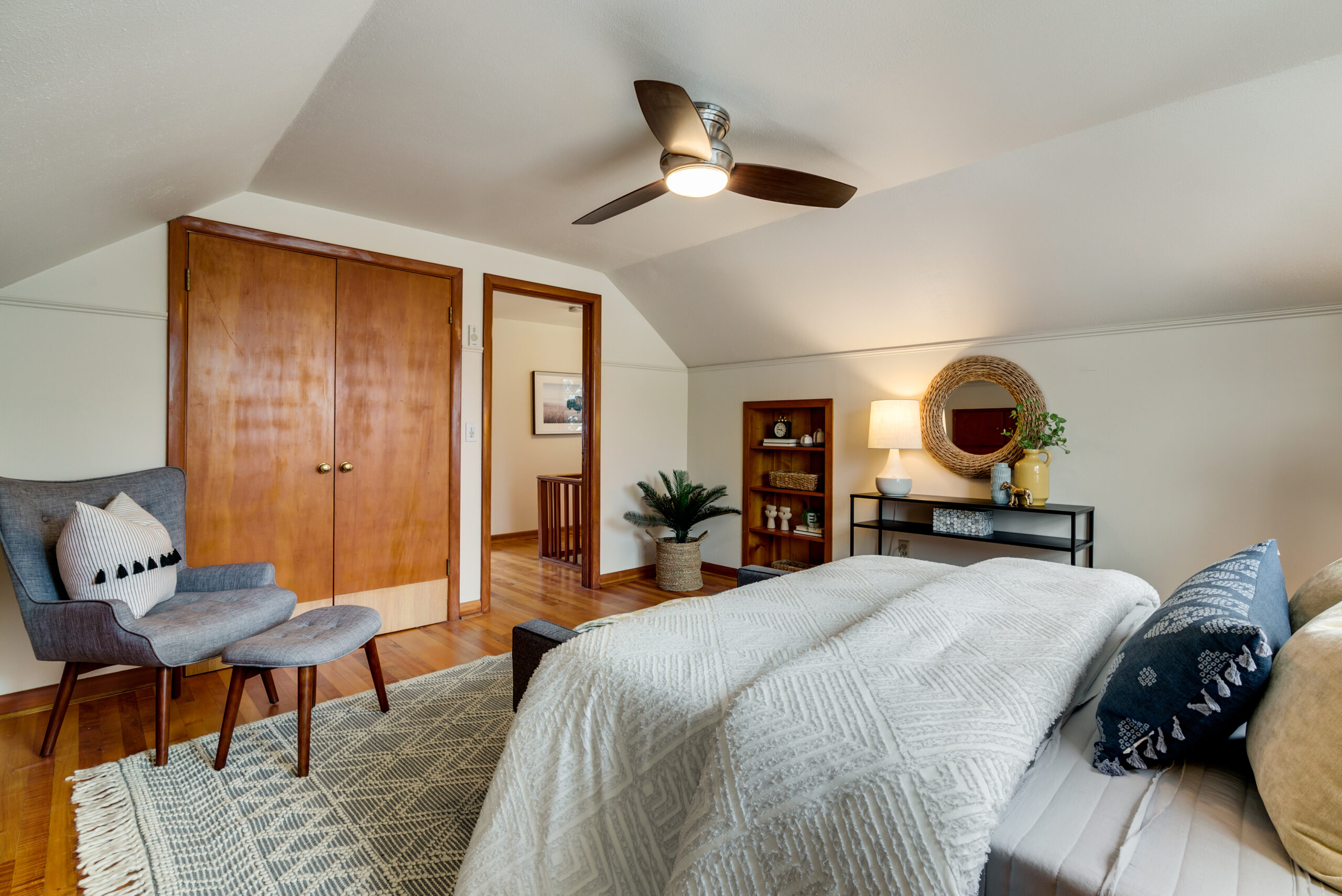 Near parks and schools in South Tabor. Discover original details such as wood floors, natural wood moldings, brick fireplace and sweet touches like original brass door knobs and front door peephole. All the charm paired with a gourmet kitchen, 2 modernized baths, updated plumbing, furnace, and water heater. Five true bedrooms and roomy unfinished basement adds potential. Sitting on an oversize treed lot with raised garden beds and apple espalier. Detached garage and covered patio!