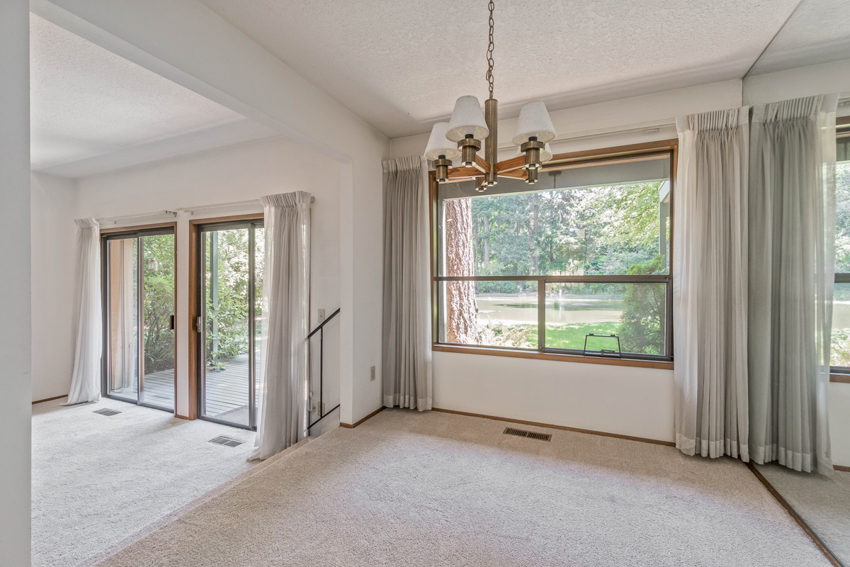 Wade Park is condo living at its best! In harmony with nature, this spacious lower floor unit has panoramic views of the serene pond. Light flows in through multiple sliding doors that provide access to patios and deck draped in green, bringing the outside in. The spacious living room offers a fireplace, access to a covered deck, pond view and has an easy flow from the dining room – bar – kitchen – family room. Wonderful community with park-like grounds, pool, and tennis courts. New Carpet!