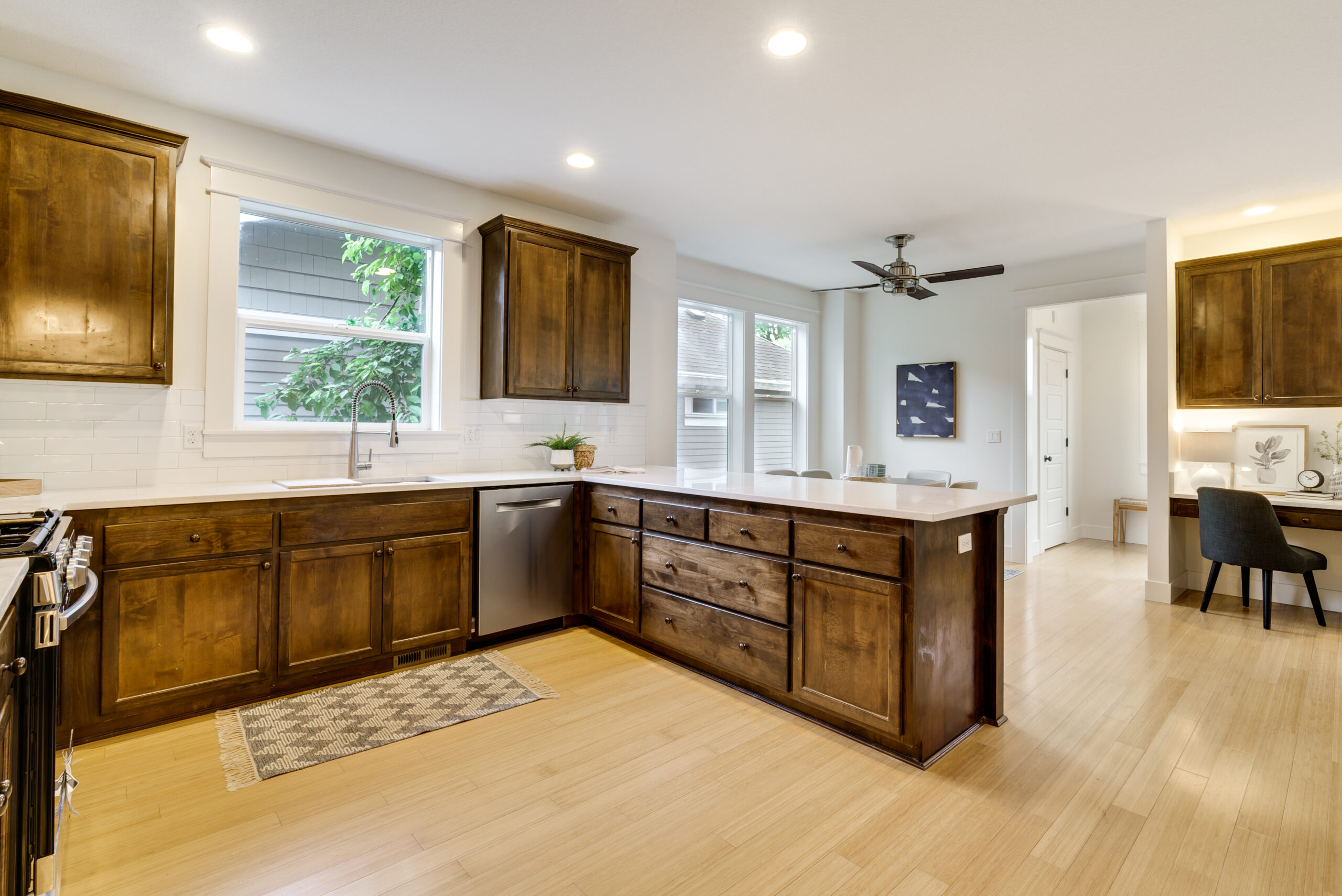 Light filled modern construction w/spacious floor plan. Refreshed kitchen with brand new stainless appliances w/bonus family room & eating nook for lounging/entertaining. Coveted 2nd flr w/4beds & 2 updated baths & laundry. Bring your imagination to the lower level w/bonus room, offers fantastic ceiling height, art studio? media room? You choose! Enjoy front and back trex decks along w/ready to plant garden beds. Tandem garage for cars/storage. Short walk/bike ride to New Seasons, Max & DT Kenton.
